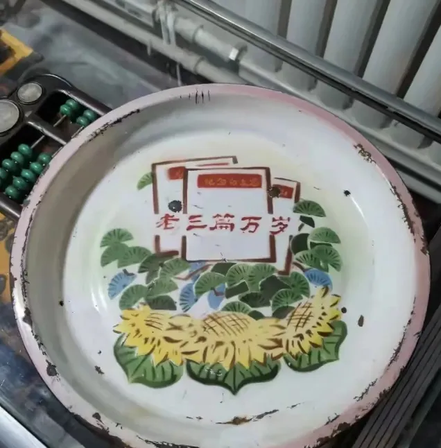 图中这个老物件叫搪瓷盆,家家户户柜顶、院子角落都放过,白底,上头印着花、红字或者大公鸡,边缘碰得掉瓷儿都露铁皮了,真不怕摔,最多就是缺口挂手,我记着有年夏天咱爷爷还拿搪瓷盆给我洗脚,那时候孩子多,好几个兄弟姐妹围着抢着用。搪瓷盆不光洗脸洗脚,逢年杀猪腌肉,收拾蔬菜剥豆角都得靠它,碰上空闲,我妈细着声儿在院里冲刷老搪瓷盆边唱边干,这习惯一直留到后来换上塑料盆才停下,质量结实,发的声都有年代味儿。