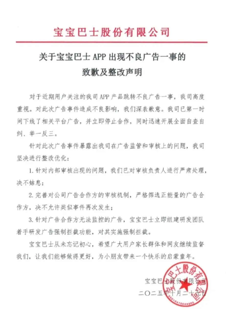 近日,曾因儿童App跳转成人低俗广告,引发家长群体抗议的知名儿童启蒙数字内容品牌“宝宝巴士”被处罚了。