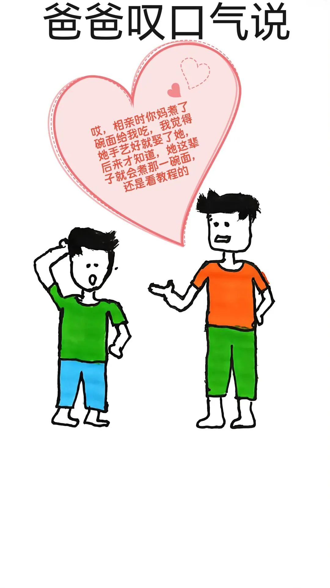 搞笑漫画:儿子问:爸你当初为何要娶我妈?爸爸:哎,你妈煮了碗面给我吃,我觉得她手艺好就娶了她,后来才知道,她这辈子就会煮那一碗面