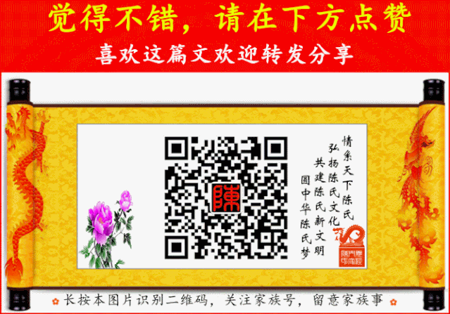 阅读本文前,请您先点击上面的蓝色字体“义门陈氏家族”,再点击“关注”,这样您就可以继续免费阅读。弘扬陈氏文化,共建家族新文明!每天有分享。