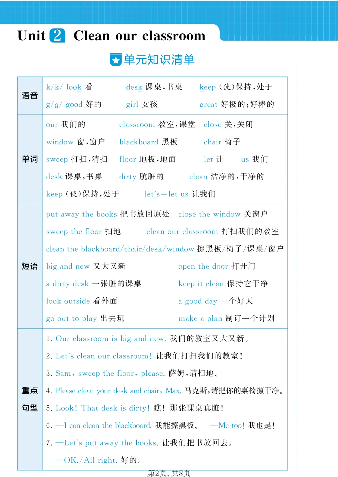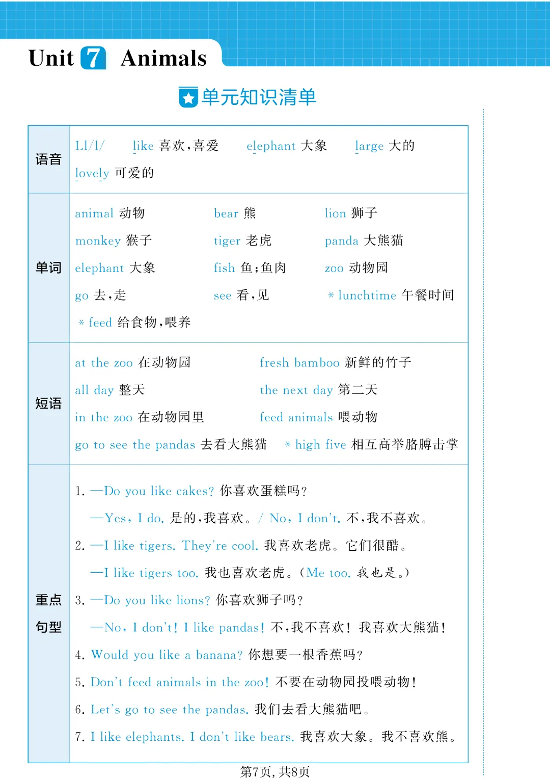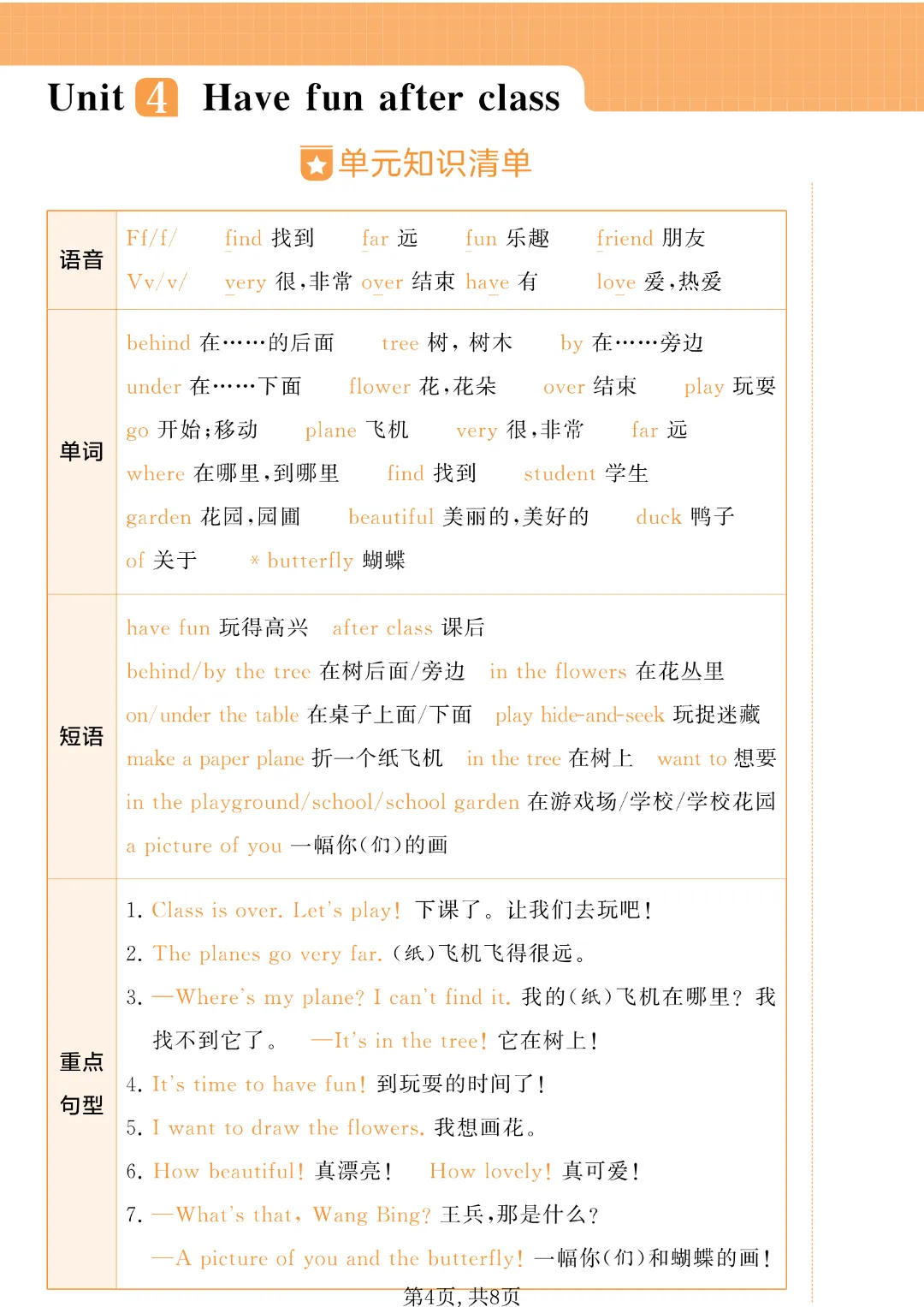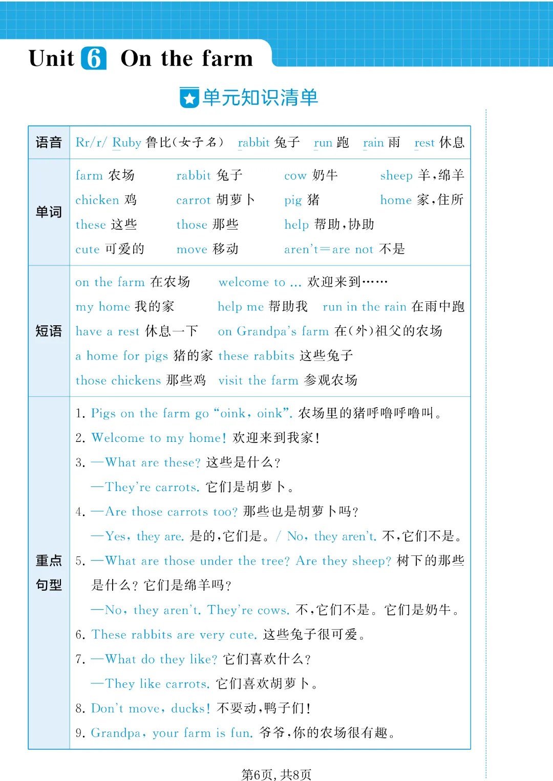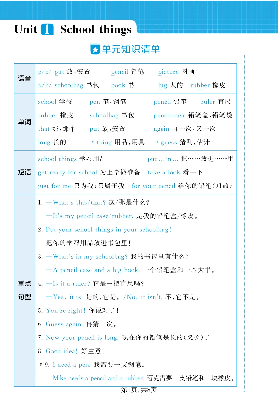 今天给大家分享的是:三年级下册英语【译林版】【第1-8单元知识清单】丨完整高清电子版可打印