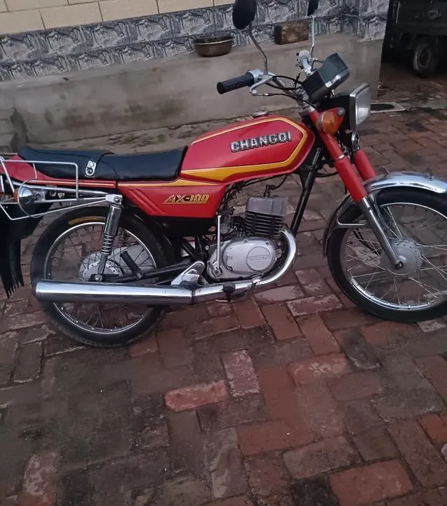 这个红色摩托叫AX100,上面写着“CHANGQI”,当年和金城、豪爵齐名,三大神车之一,别看外观没什么花头,油箱方正、大梁结实,那声浪最让人有印象,油门收紧一轰像鼓槌打在心上,每次村头出来一辆,全村人几乎都要多看两眼,亲戚有一回坐后座,把装玉米的麻袋捆在车架上,走半里地掉了仨,不赖摩托,干脆利索,动力足,发车一把利落得跟弹簧似的,谁要正经喜欢机车的人,没摸过这三款,算不得齐活。