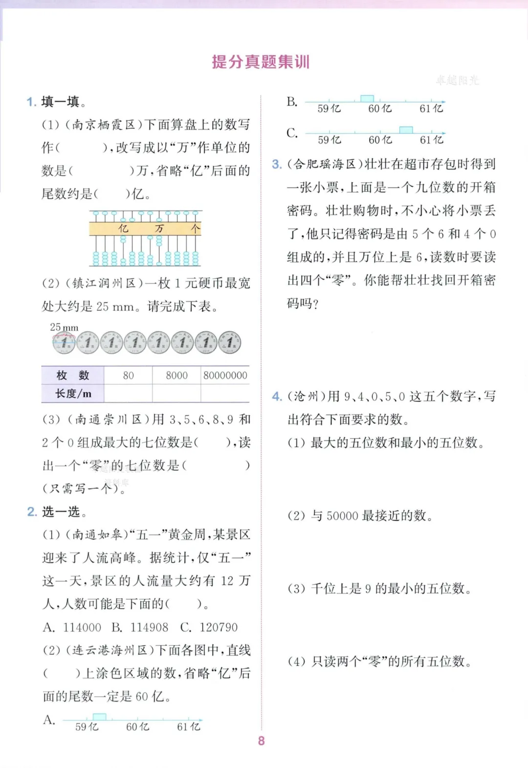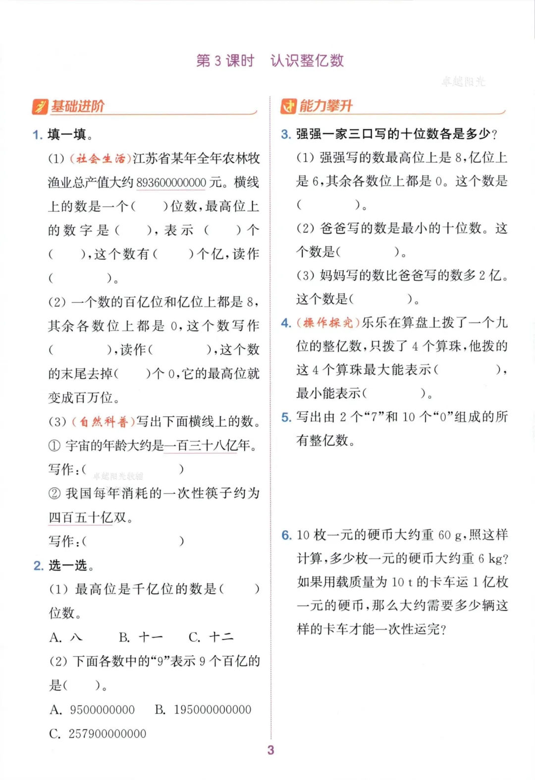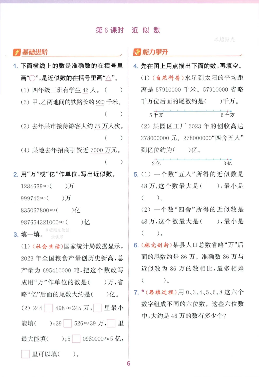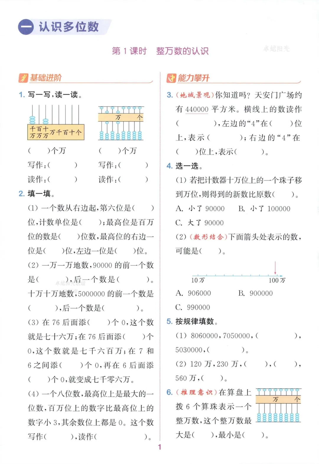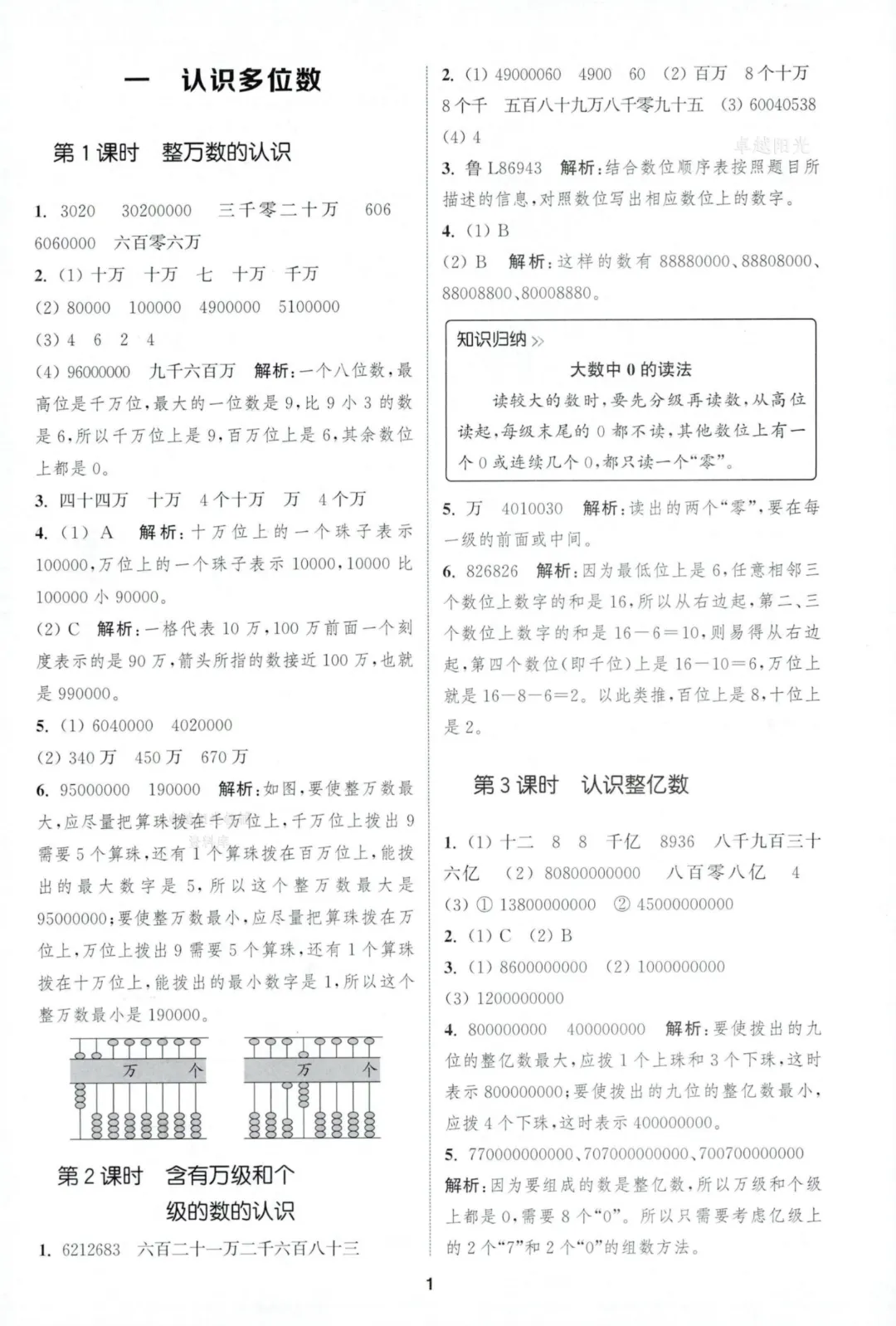 2026春新版四年级下册数学【苏教版】《第一单元课时练》完整高清电子版