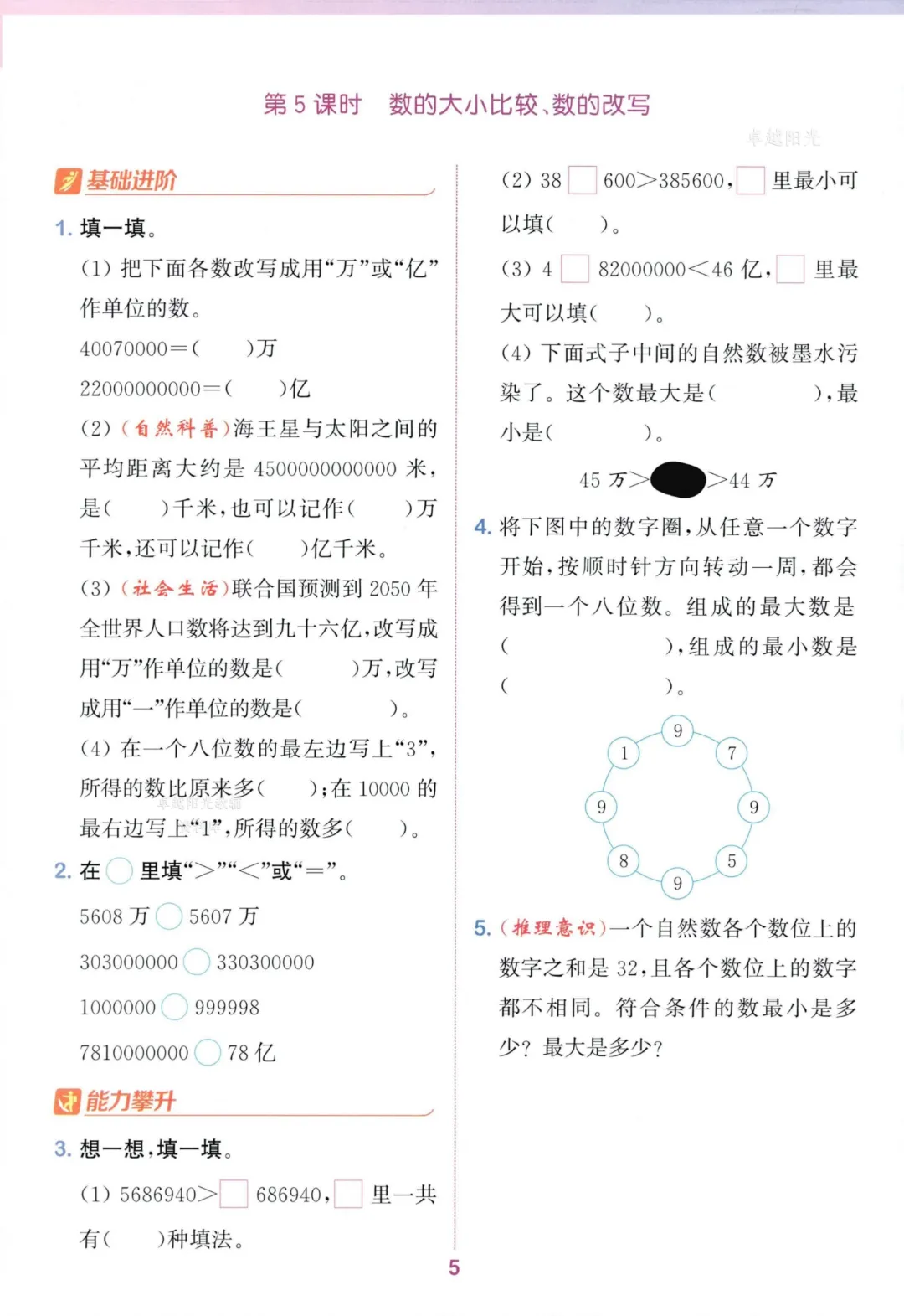 2026春新版四年级下册数学【苏教版】《第一单元课时练》完整高清电子版可打印