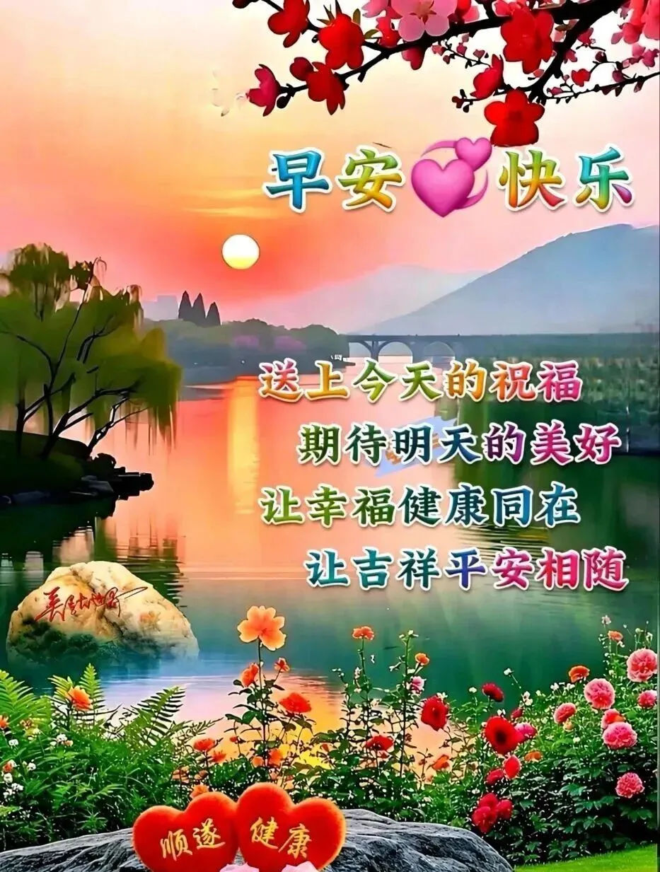 日出,迎阳光;日落,迎梦想;清晨,迎希望;每天,迎安康。愿我们都开心快乐!幸福吉祥! 天天顺意,日日安康。 早上好💐🍁🍂🌾