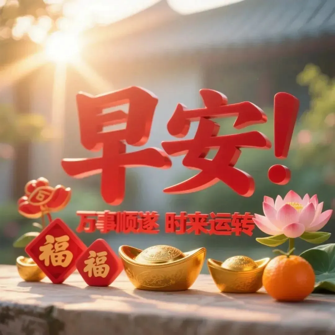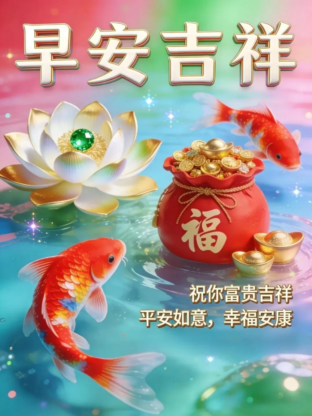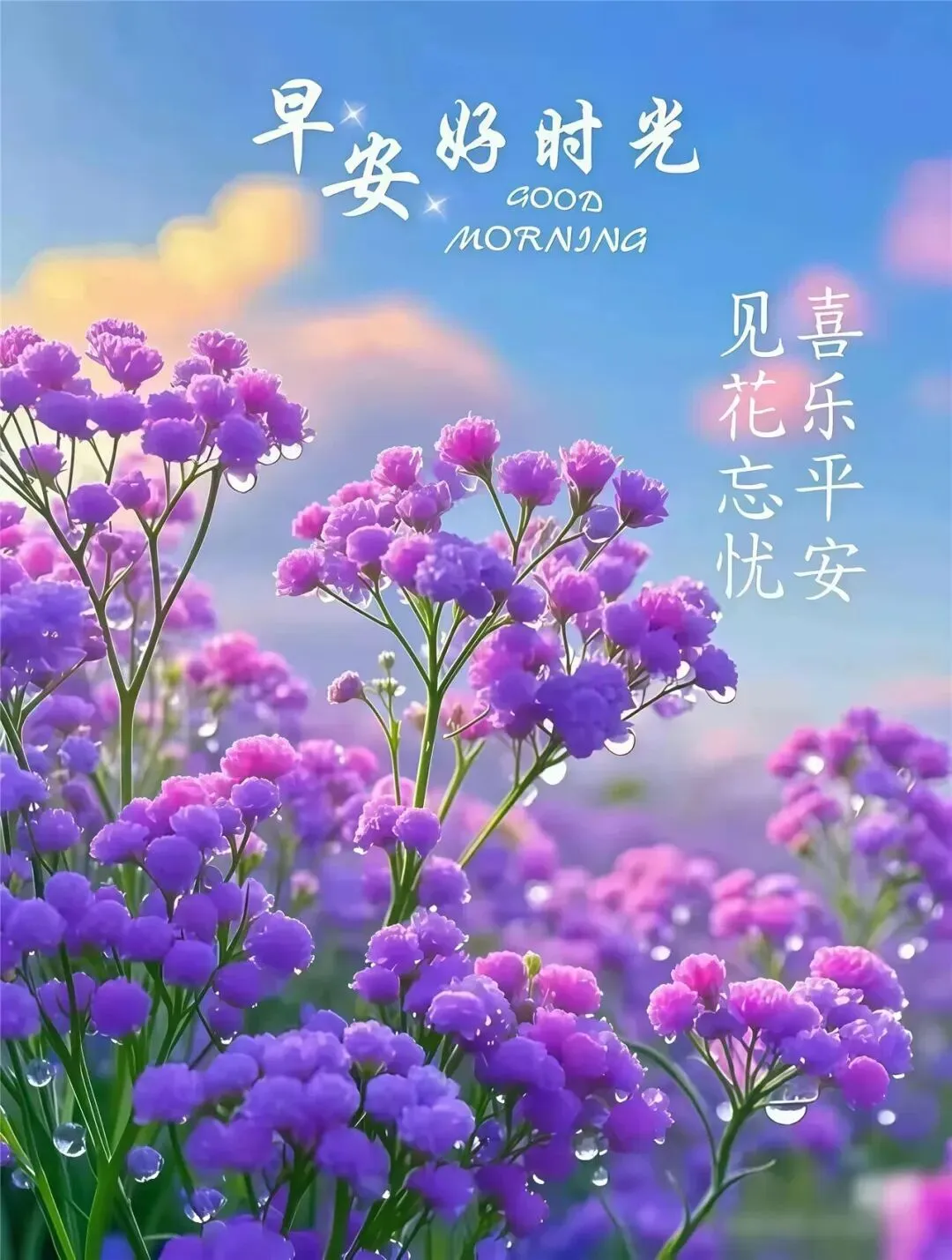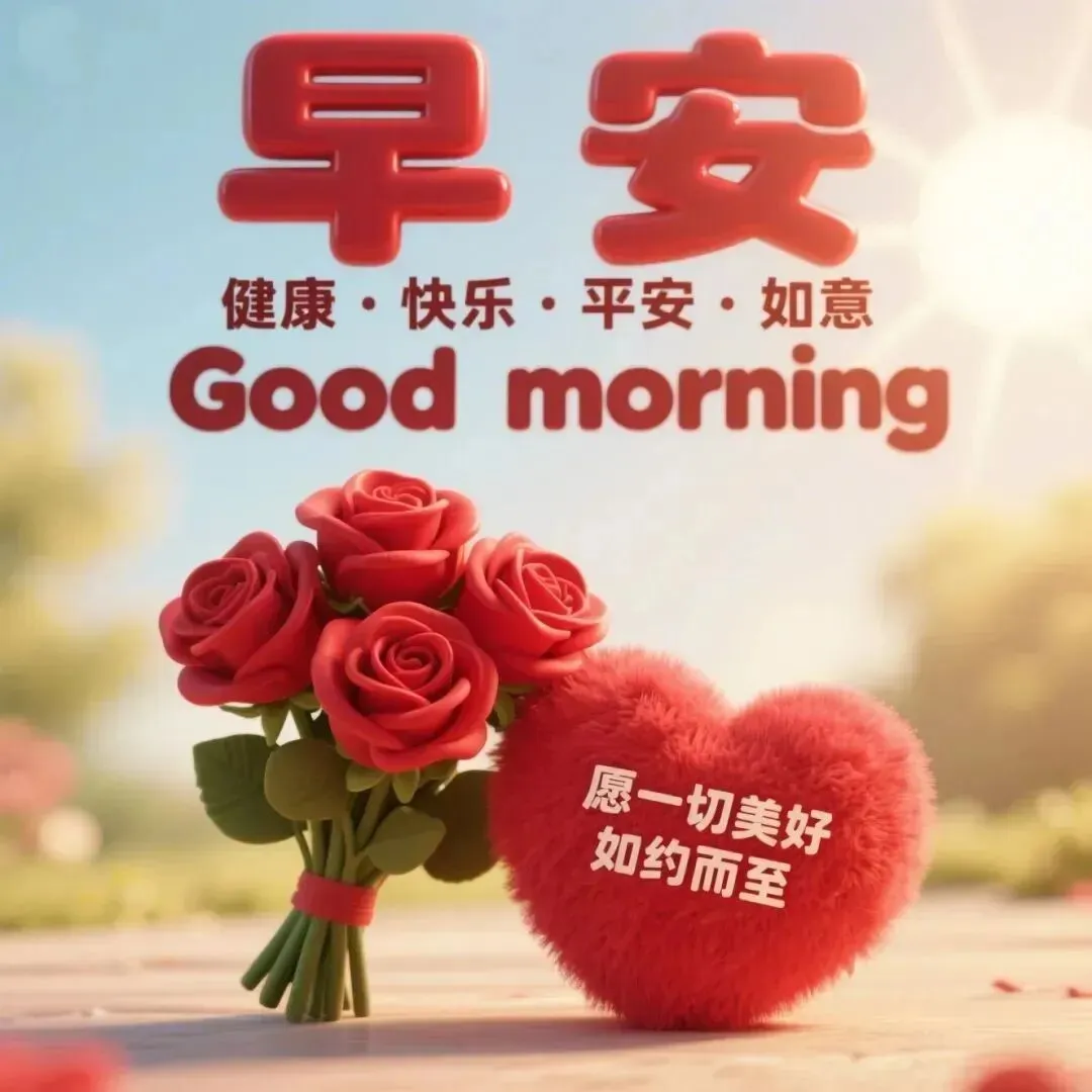一早万事如意,一天开心有趣,一月紫气东来,一年春风得意,一路繁花似锦,一生健康平安!愿我们快乐一辈子,幸福一辈子,幸运一辈子,年轻一辈子!晨安吉祥