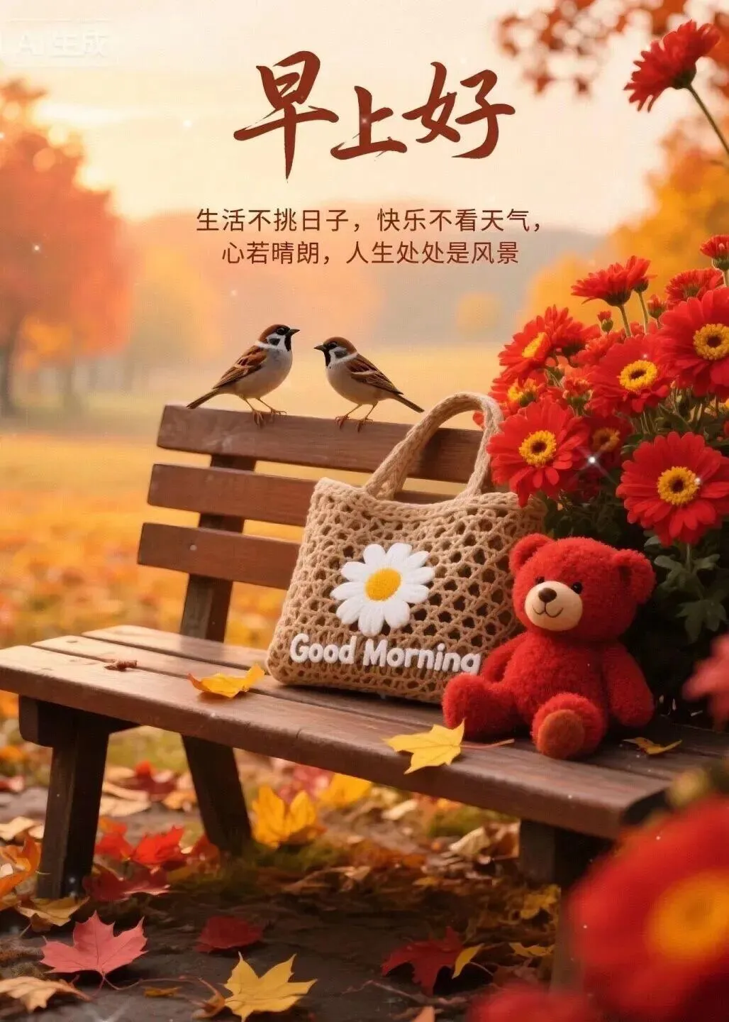 人生之乐,简单就好;回眸过往,皆是笑貌;把握当下,烦恼全消;憧憬未来,阳光普照;心若向阳,无谓悲伤。早安~吉祥!🍂🌾