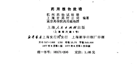 记录了1970 年代我国药用植物栽培的技术水平与生产状况,是研究现代中药农业发展的重要史料。