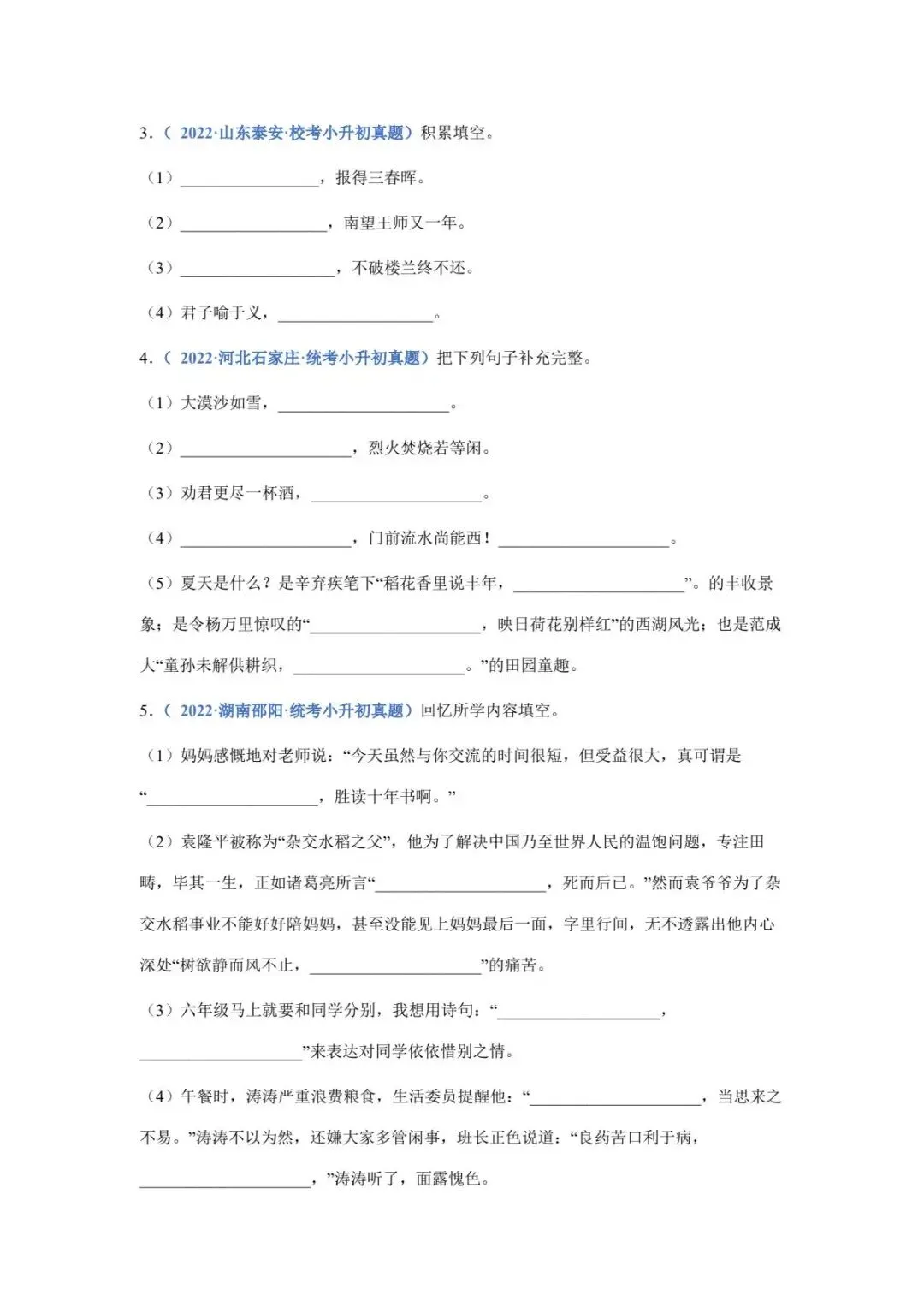 我们精心整理了六年级下册语文名篇名句默写填空资料,涵盖课本重点诗词、经典段落,精准把握考试方向。