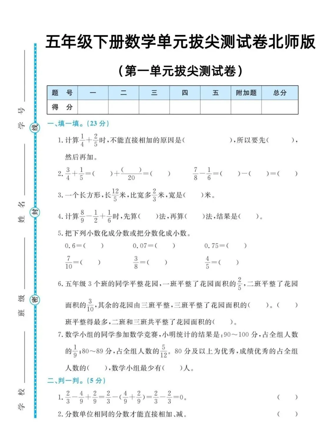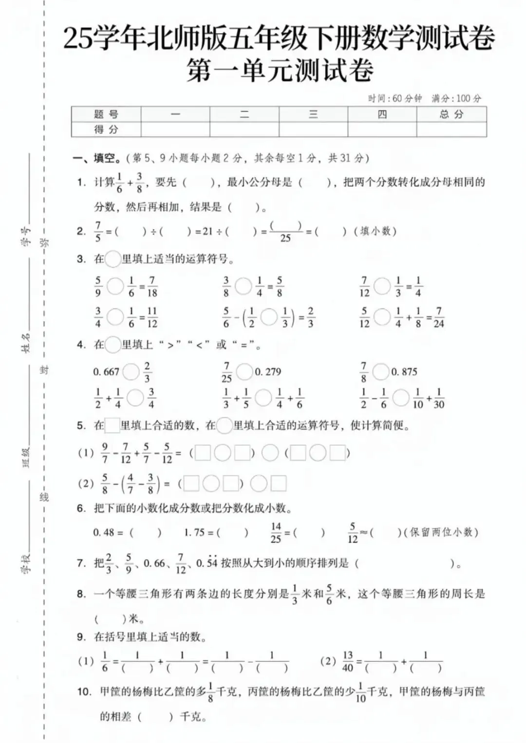 2026 年春季北师大版五年级下册数学第一单元测试卷 4 套(含完整答案),资料完全同步本学期最新教材,贴合校内单元考点与教学进度,非常适合孩子单元复习、课后练习、查漏补缺使用。