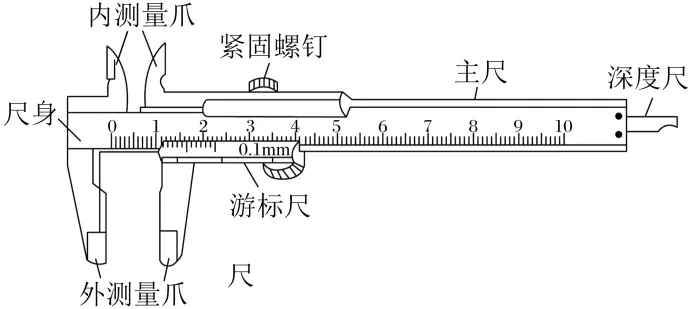 (1)构造:主尺,游标尺(主尺和游标尺上各有一个内、外测量爪),游标卡尺上还有一个深度尺。(如图所示)