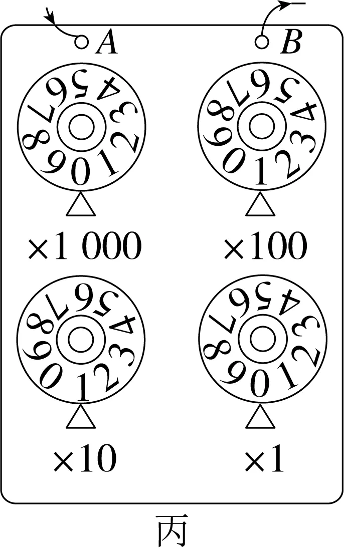 (3)旋钮式电阻箱如图丙所示,电流从接线柱A流入,从B流出,则接入电路的电阻为110 Ω。现欲将接入电路的电阻改为2 010 Ω,最简单的操作方法是将“×1 k”挡旋钮调到2,再将“×100”挡旋钮调到0。若用两个这样的电阻箱,则可得到的电阻范围为0~19 998 Ω。