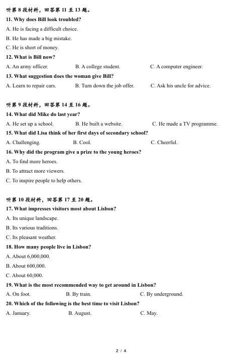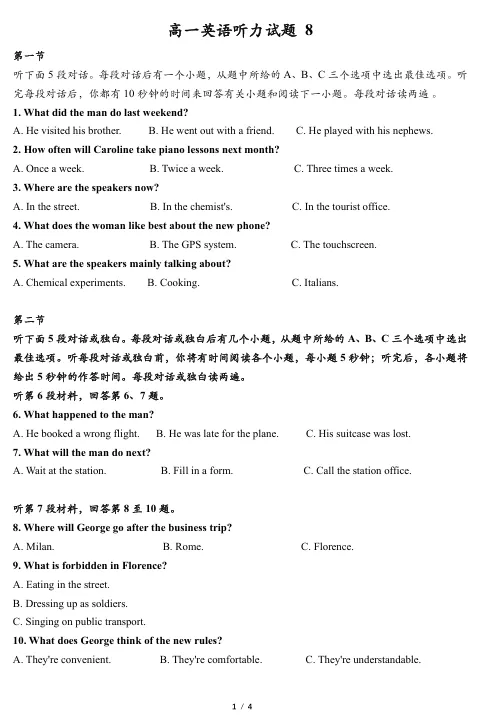 高一英语听力模拟训练 第8套<文末附电子版免费下载链接+听力音频>