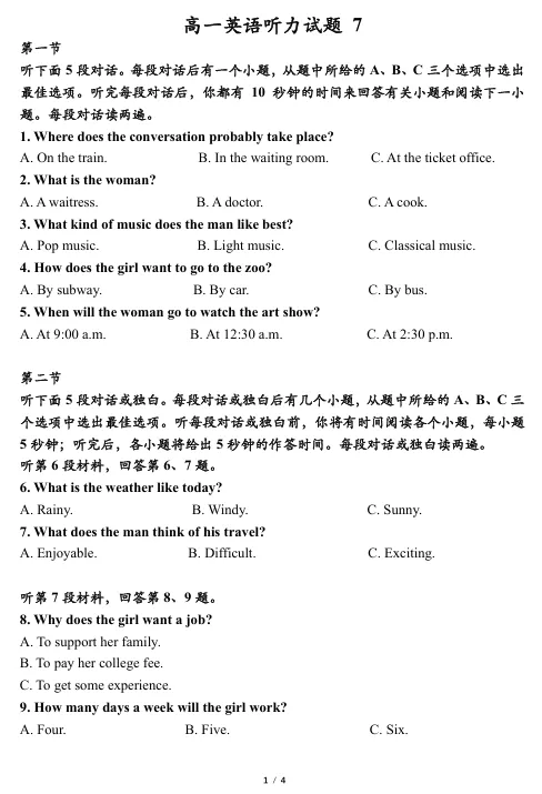 高一英语听力模拟训练 第7套<文末附电子版免费下载链接+听力音频>