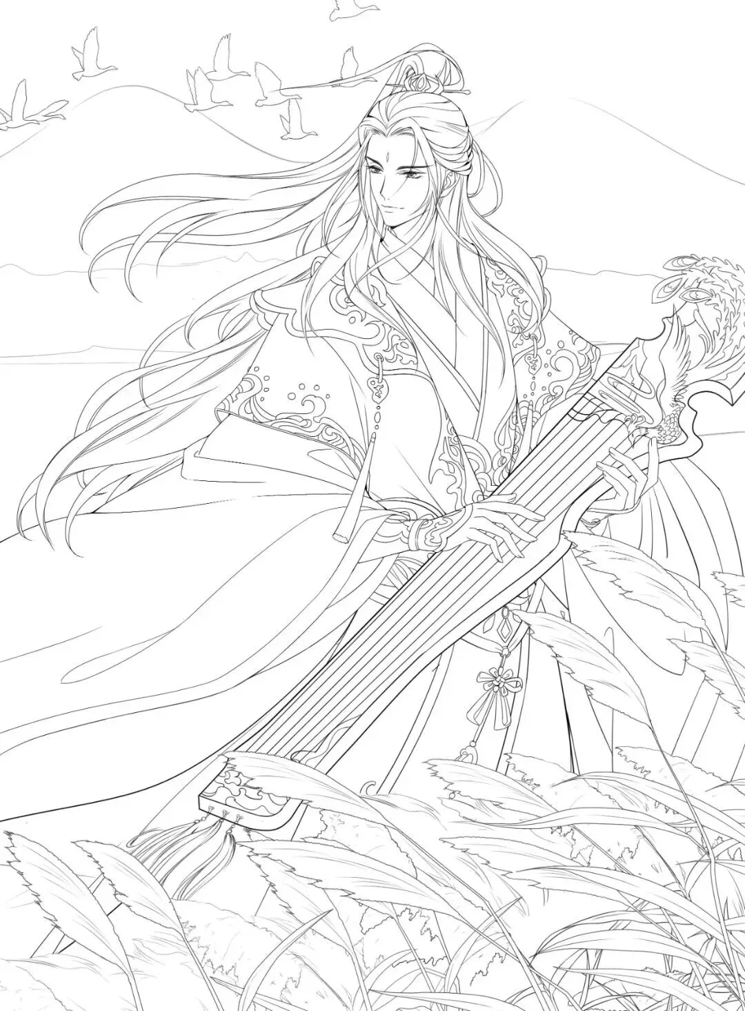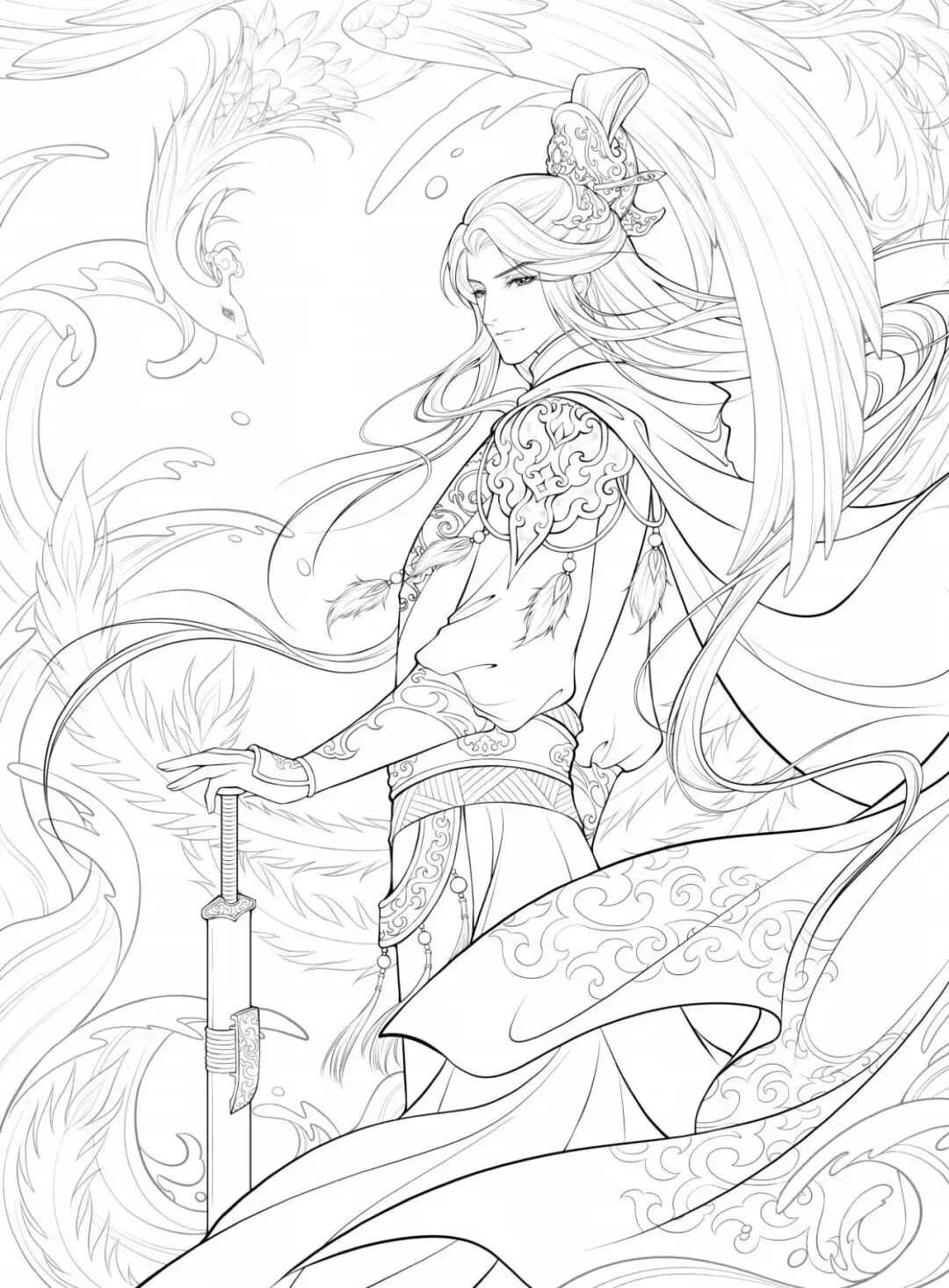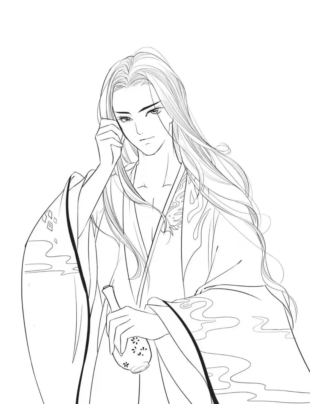 古装美男子,帅哥漫画线稿