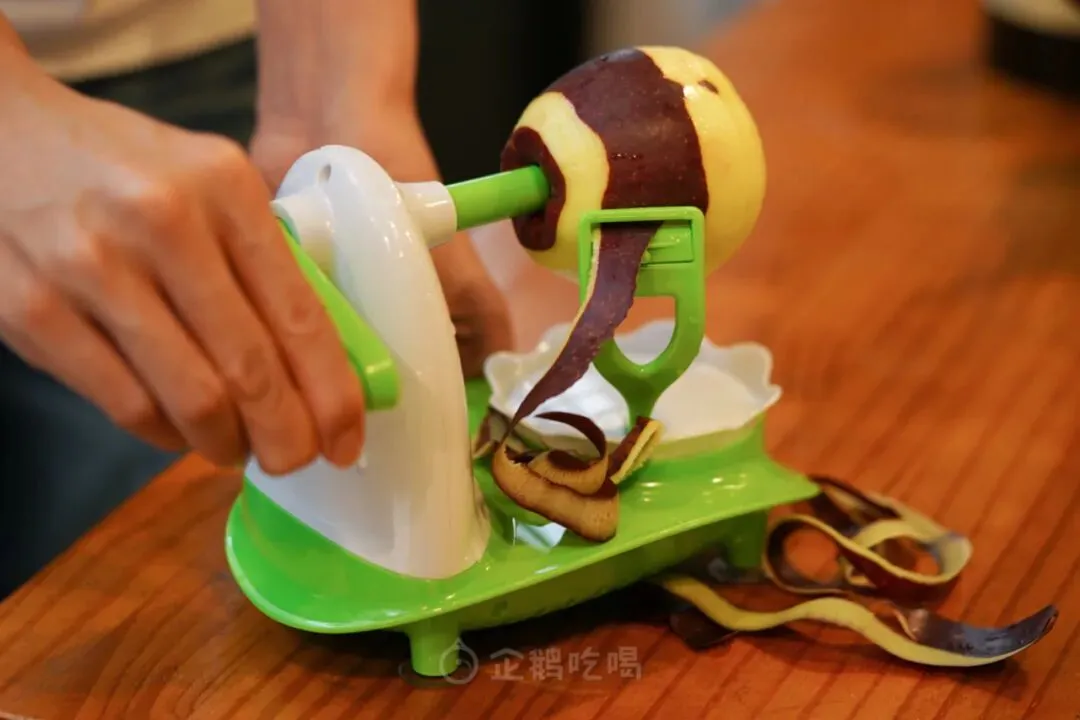 因为是手摇的,所以即使刀片锋利也不怕割到手;其次它削出来的皮特别薄,几乎是贴着果肉能透光那种,不用担心浪费。