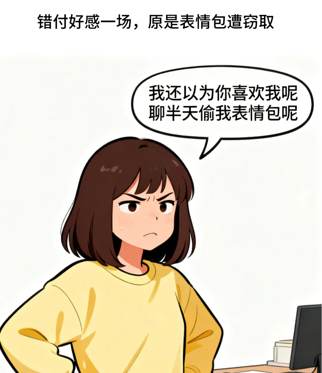 趣味漫画:我还以为你喜欢我呢:聊半天偷我表情包呢.