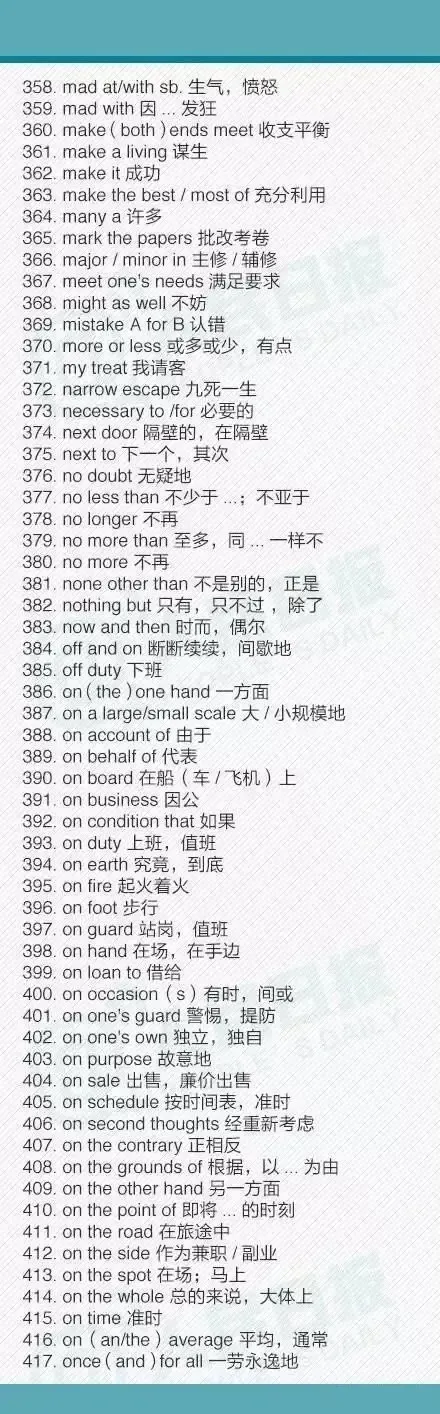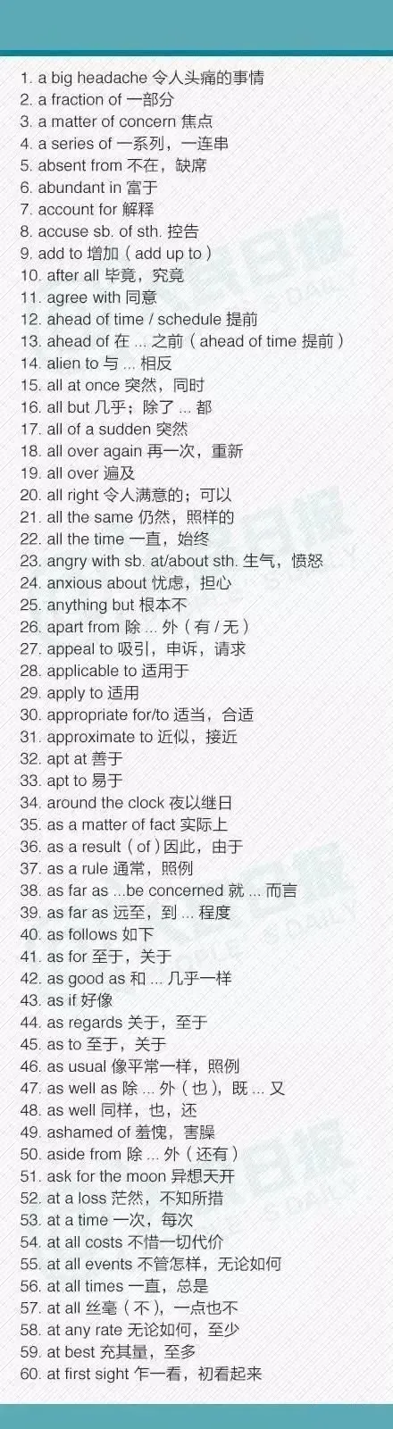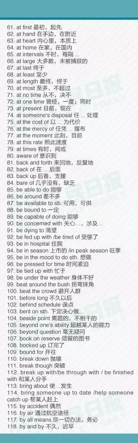 初中三年常用的短语合集,有点多,建议收藏!