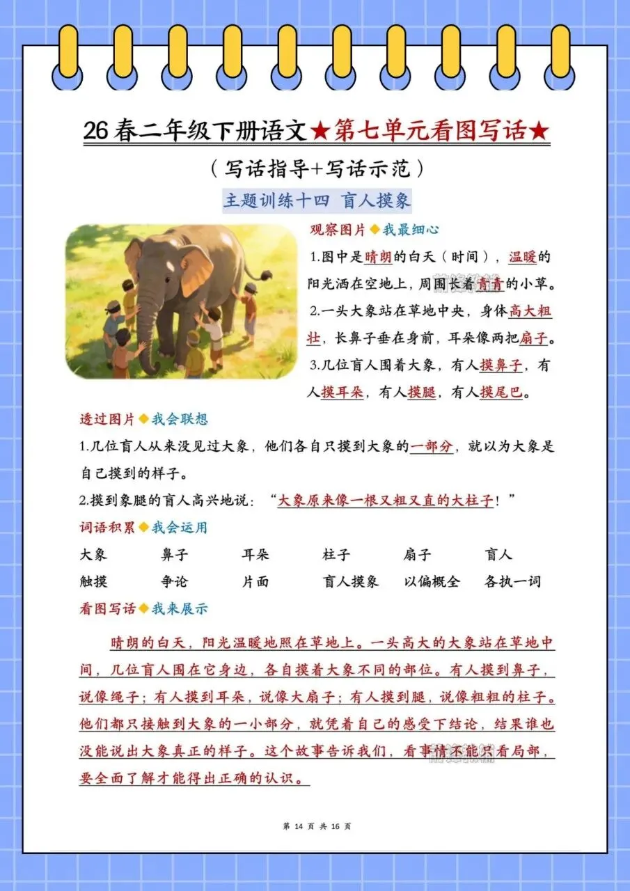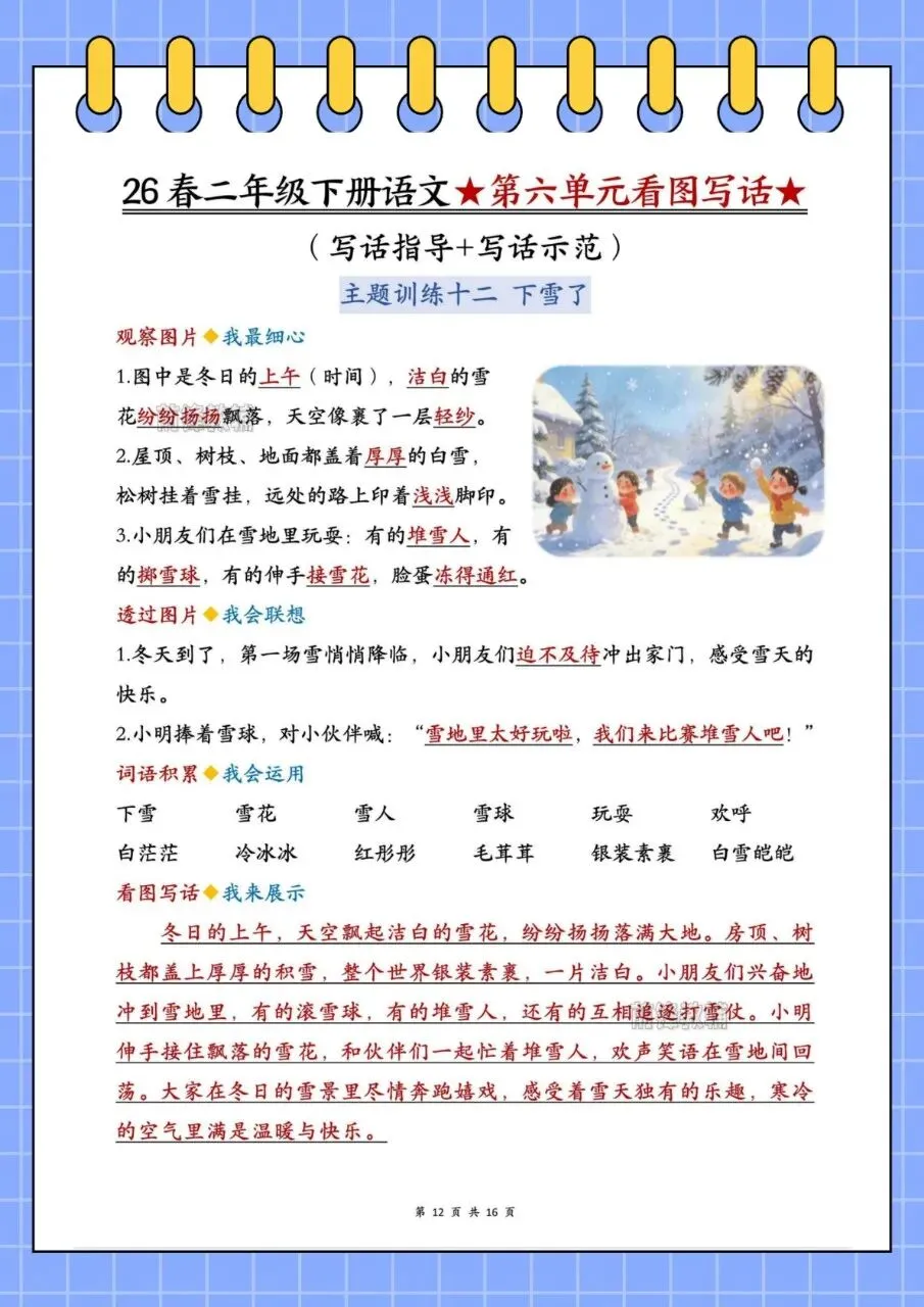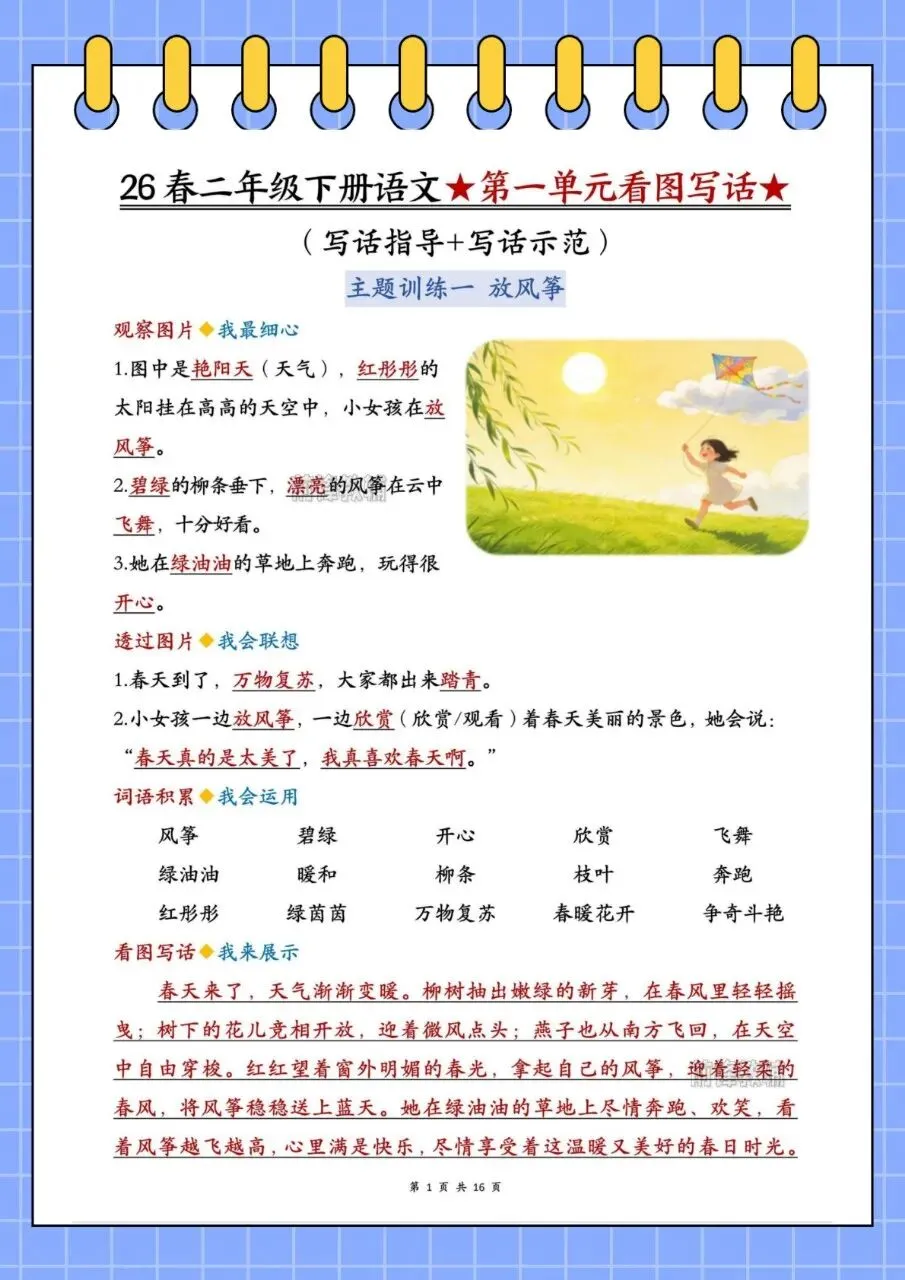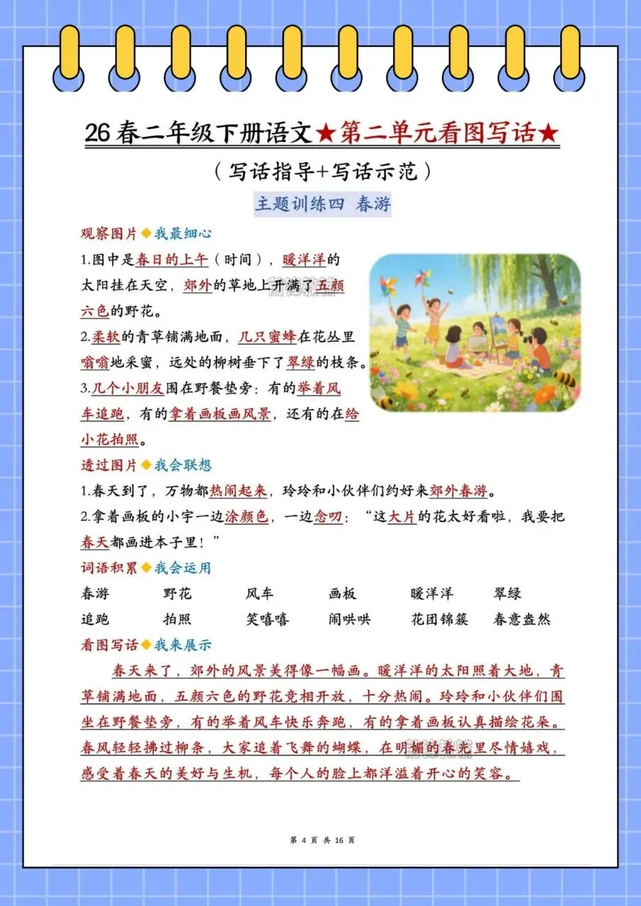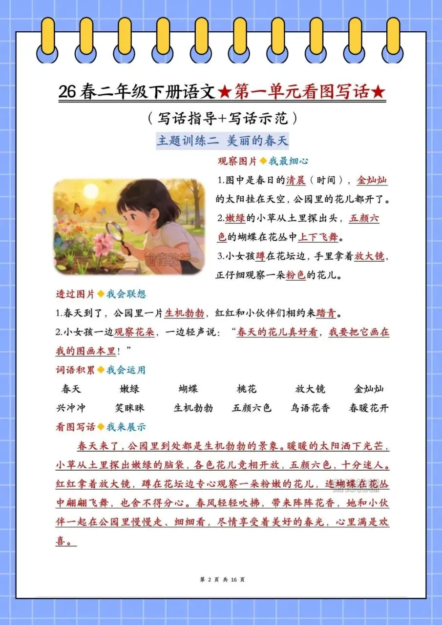 26春二年级下册语文看图写话电子版资料,1-8单元全都有,内容丰富,范文+空白练习,每单元主题训练,适合同步练习和提前预习,提升写作能力~