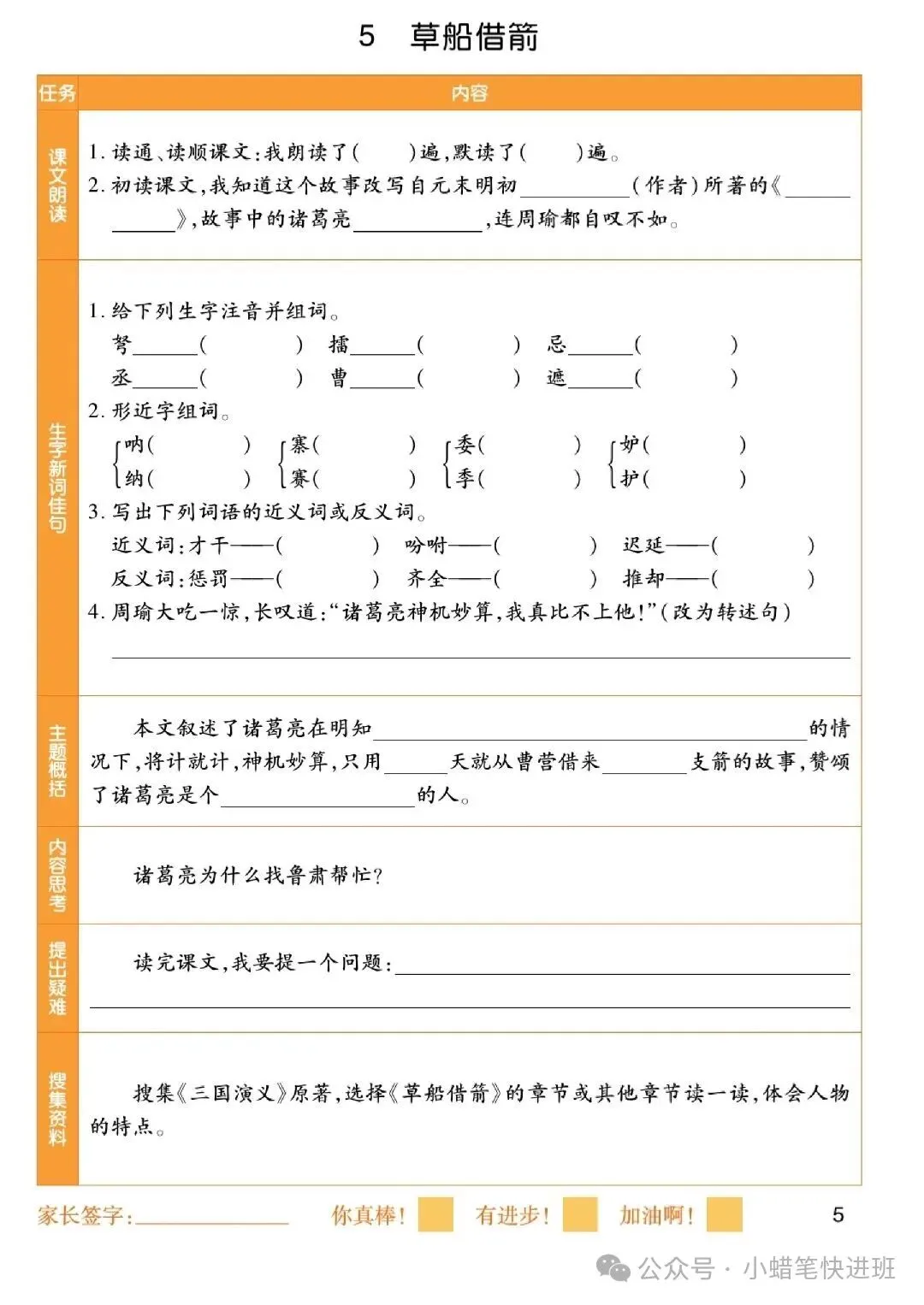 26春五年级下册语文《课前预习单》|高清电子版可打印