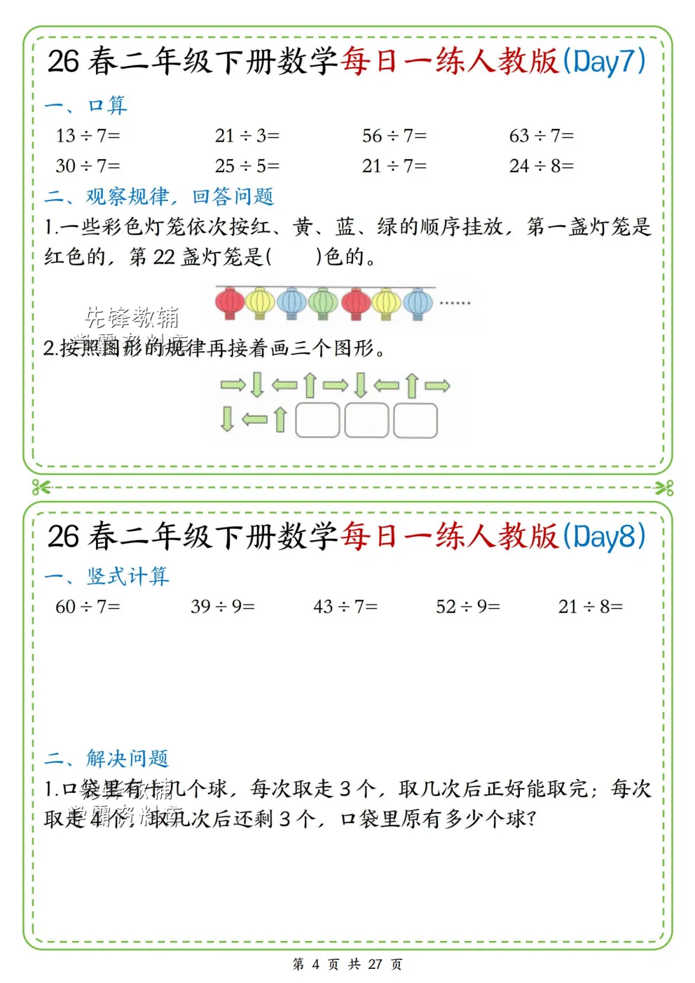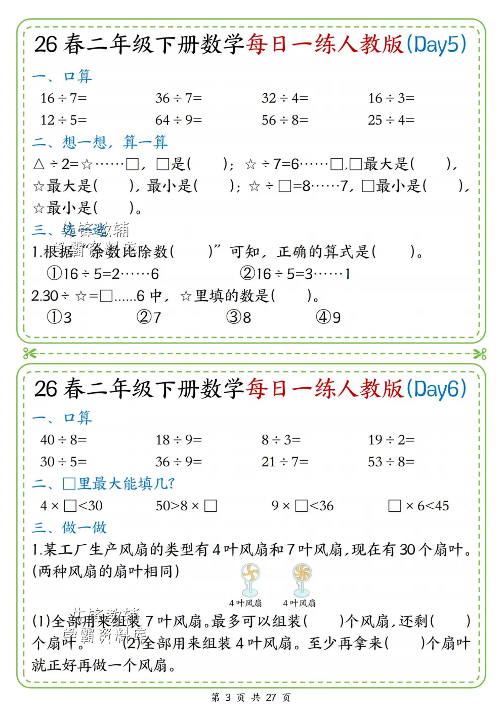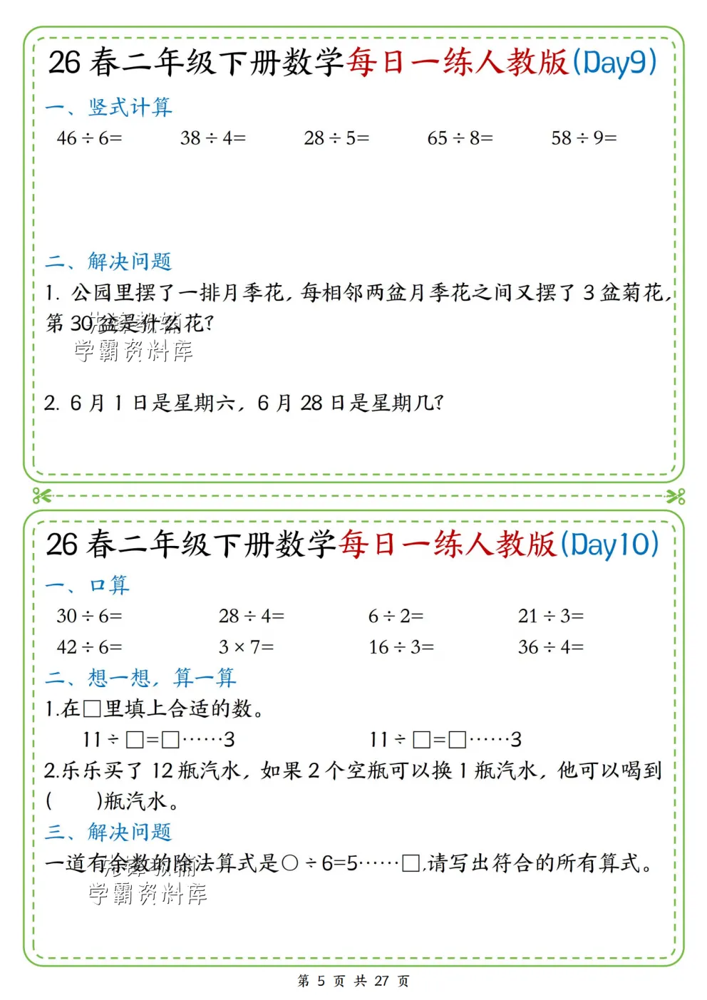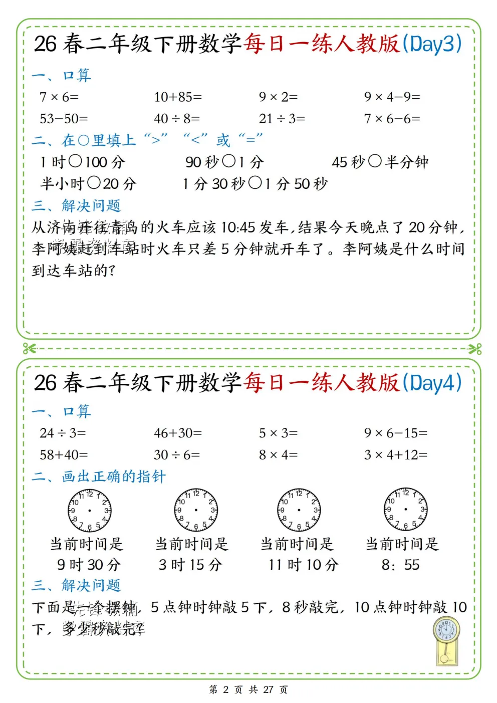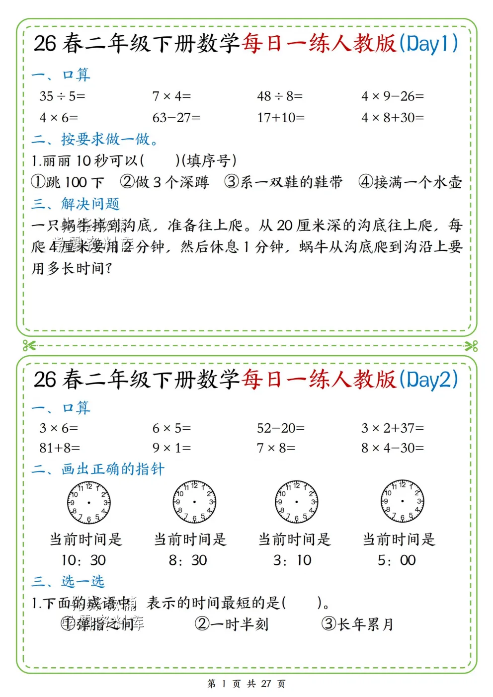 2026年新版《二年级下册数学每日一练》电子版可打印
