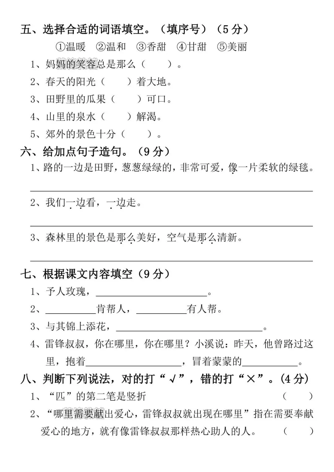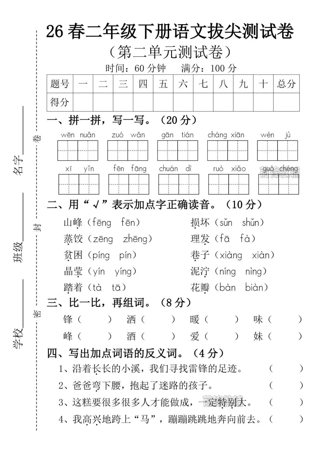 26春二年级下册语文第二单元拔尖测试卷(电子版可打印)
