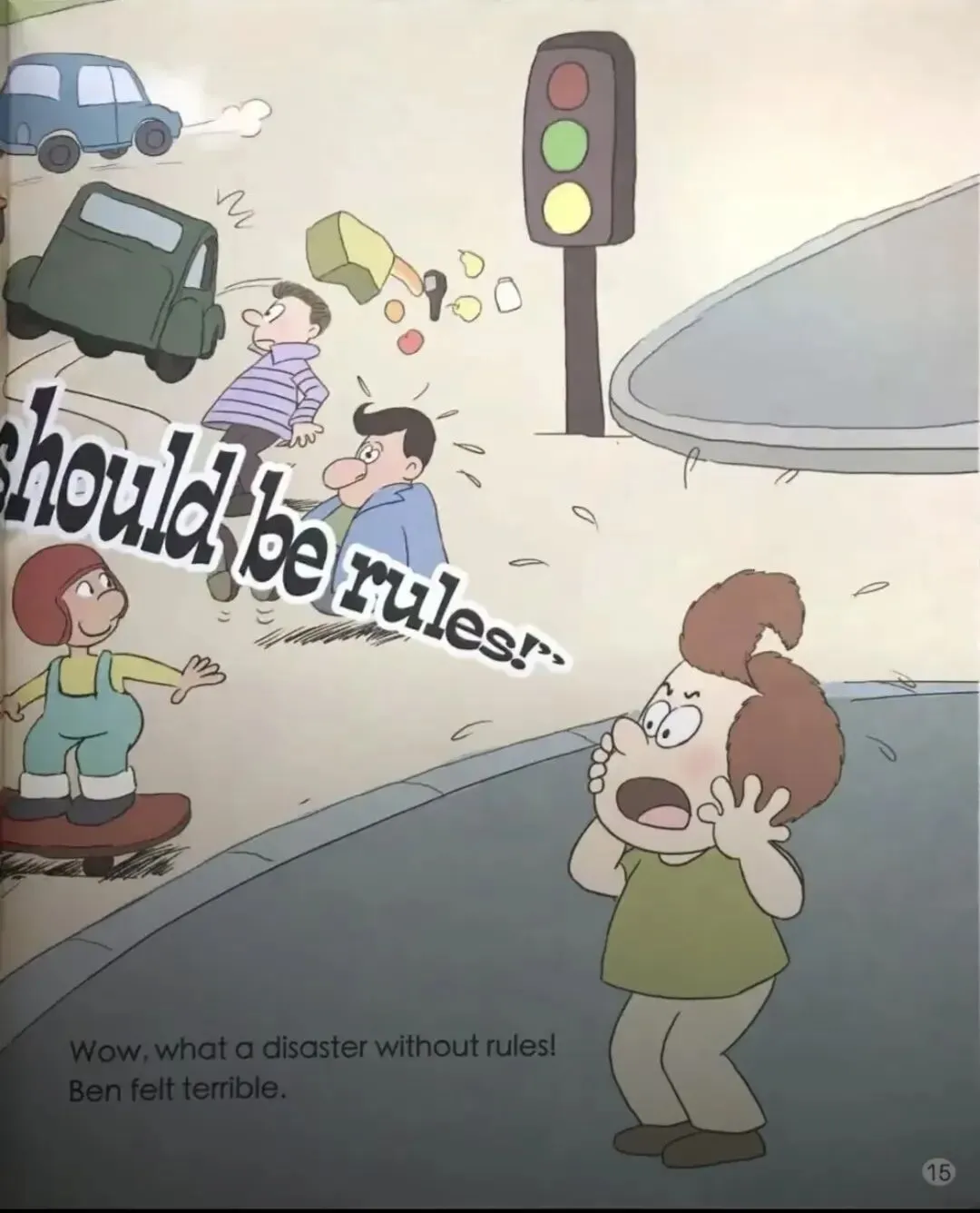 今天和大家分享的绘本是《There Should Be Some Rules》,绘本中的语言简洁明了,适合学生模仿学习。通过阅读,学生可以了解并学习很多关于课堂、电影院、动物园、交通等场景的词汇,还能学到描述规则、表达观点的常用句型。学生们不仅可以直观感受没有规则时的混乱与危险,还能学会用英语更好地表达自己对规则的理解和看法。