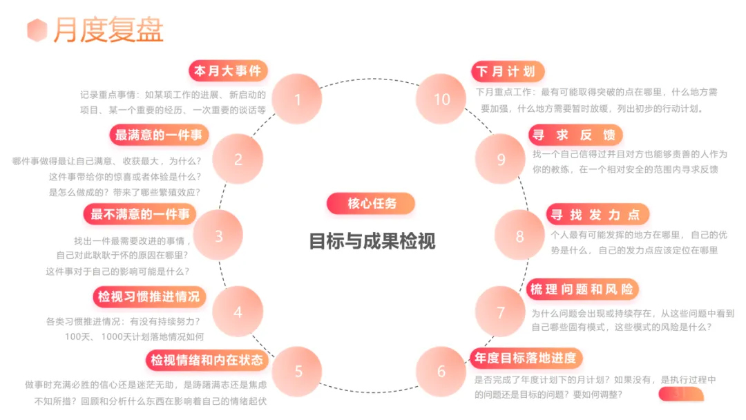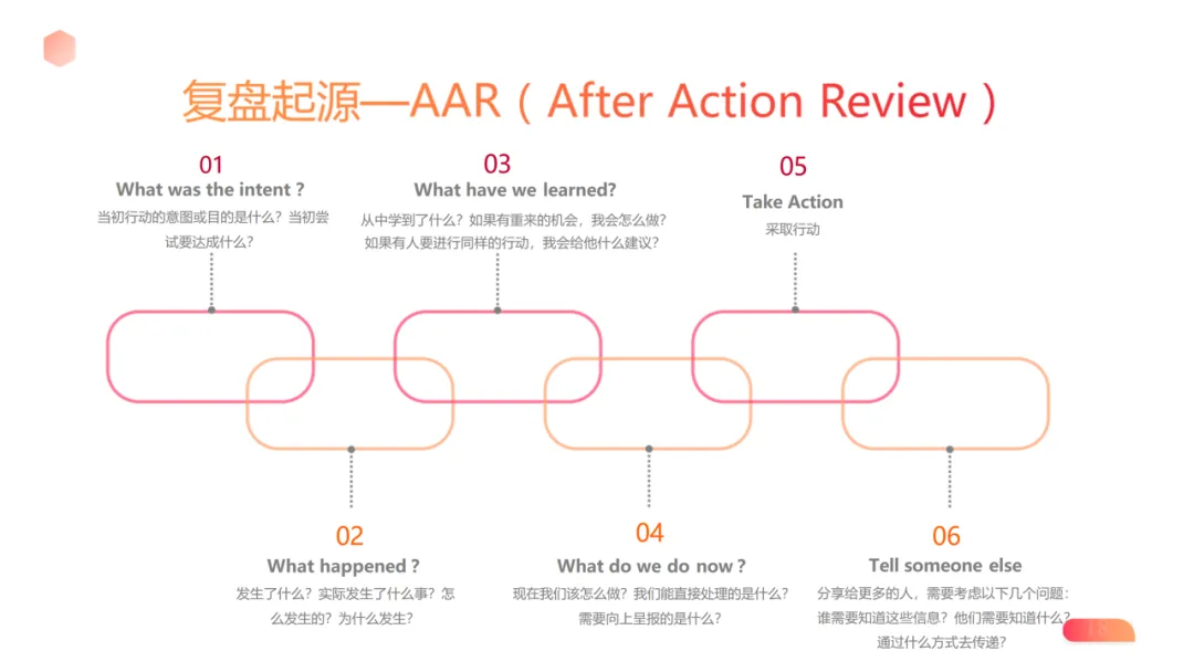 落地关键:坚持 “真” 与 “行”,真实面对问题、落地具体行动;建立反馈机制,个人复盘注重自我检视,团队复盘强化互动反馈;形成习惯,通过固定时间、专属空间、工具辅助,让复盘成为生活常态。