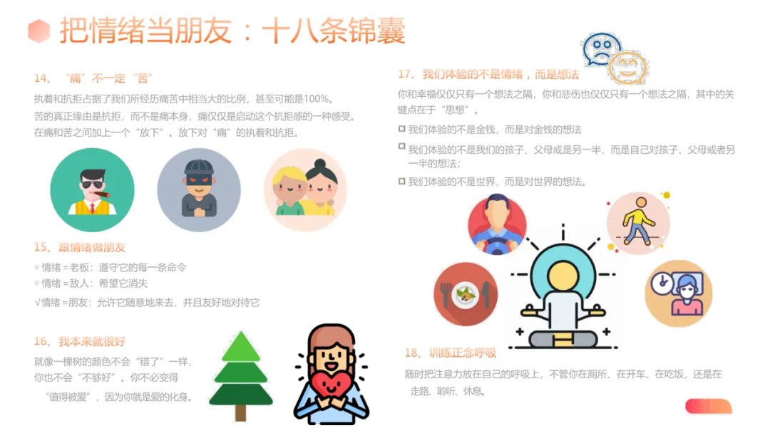 情绪复盘:以 “痛苦 + 反思 = 进步” 为核心,记录情绪事件、追溯认知根源,提炼十八条情绪管理锦囊;