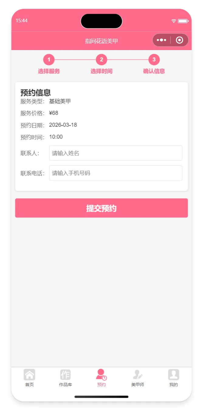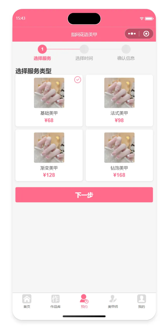 适用场景:单店 、美甲工作室、美甲品牌官方服务号配套小程序。
