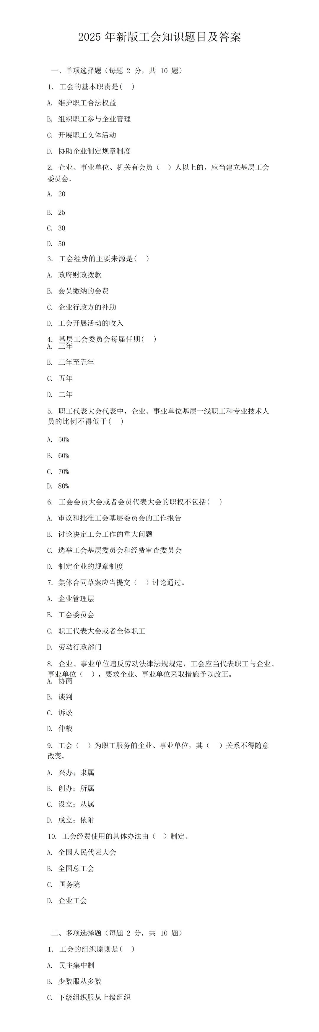 【免费下载】2025年新版工会知识题目及答案.docx