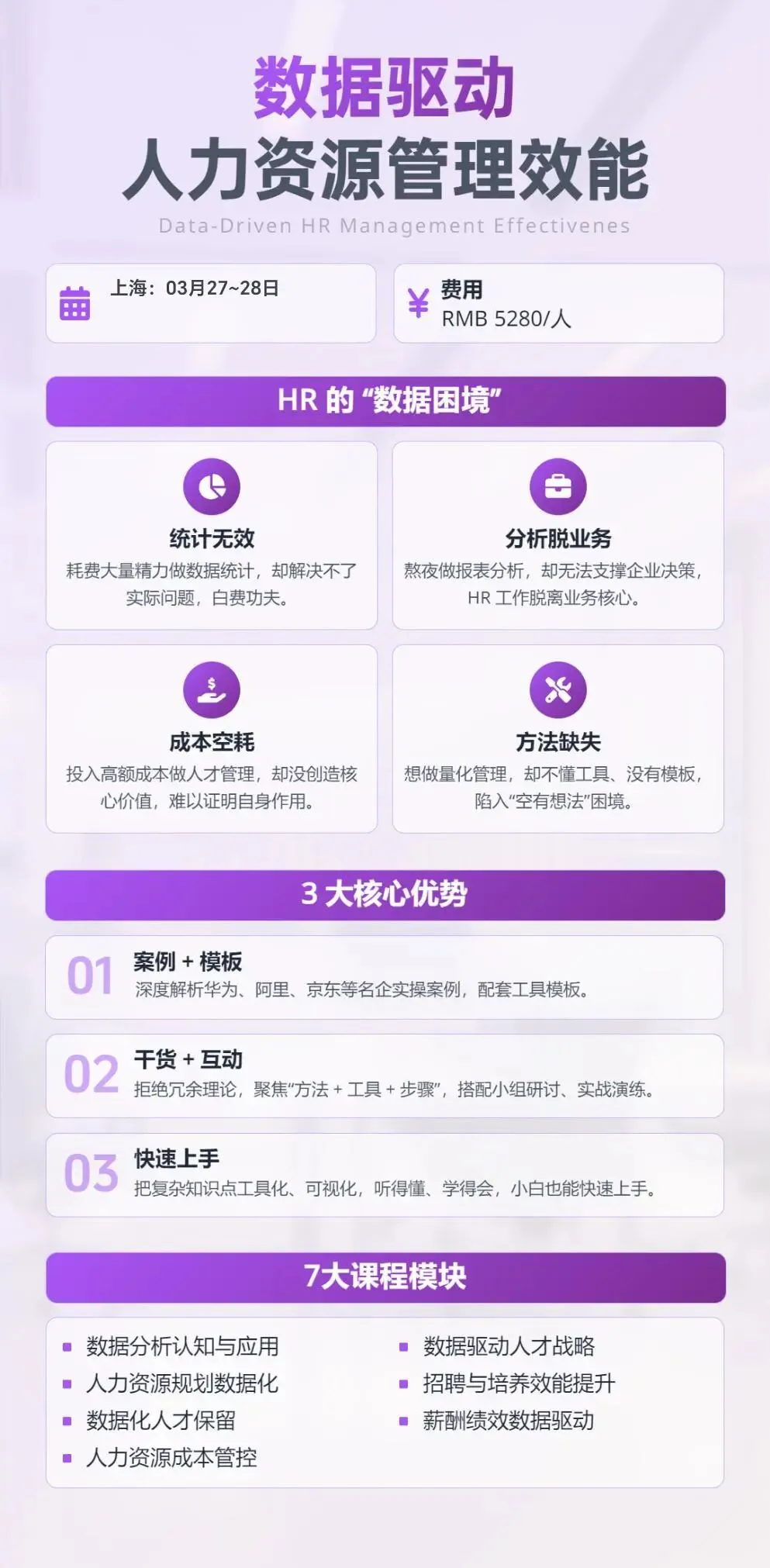 我们联合专业讲师,打造了【数据驱动人力资源管理效能】线下课。