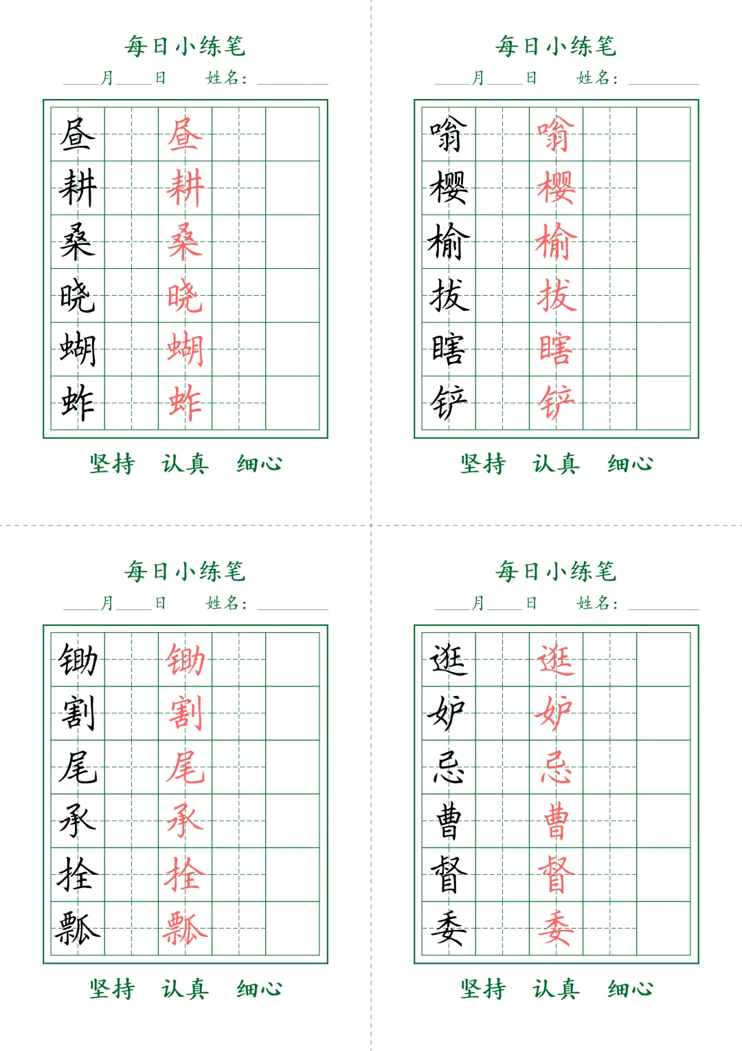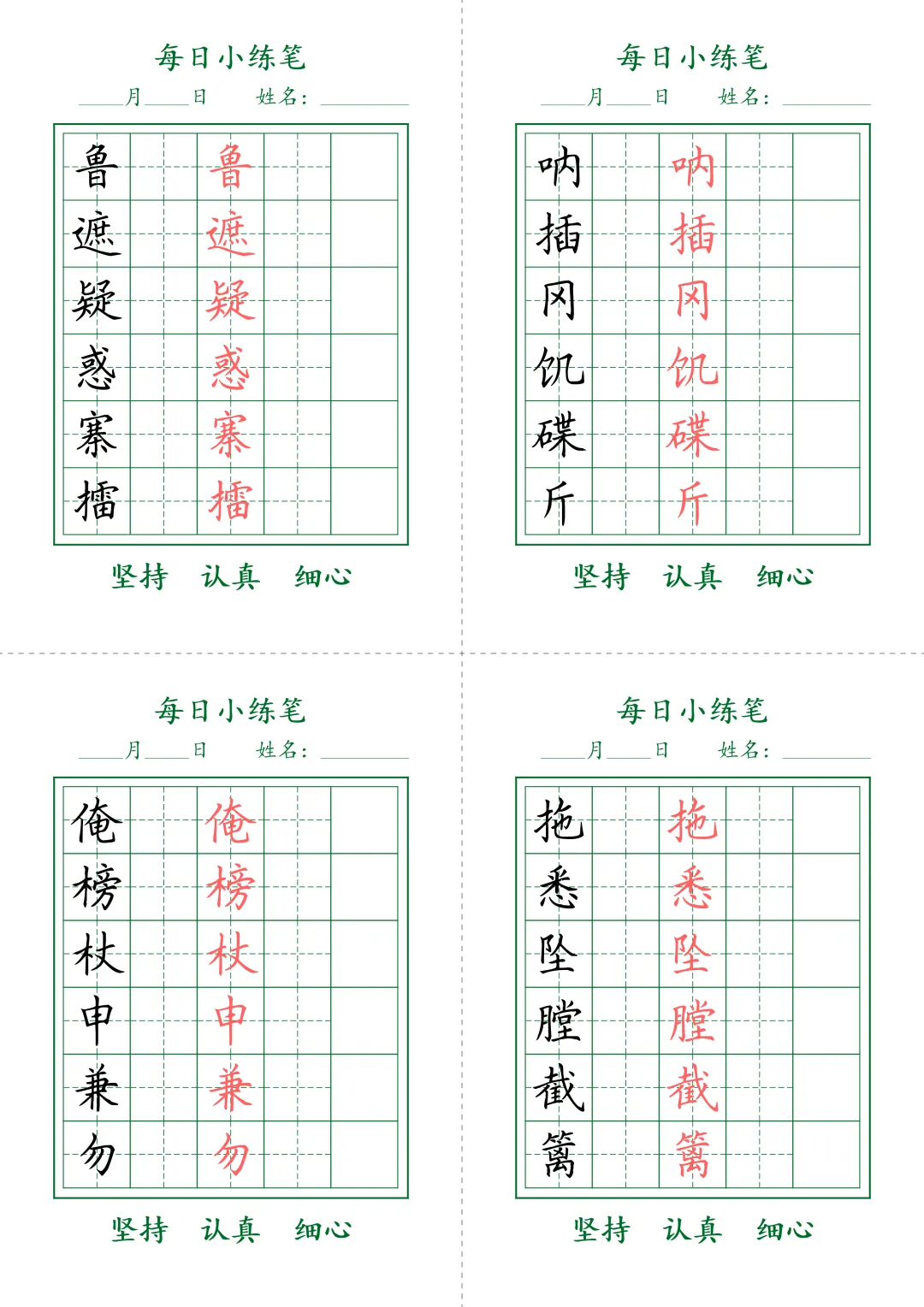 五年级(下)语文 每日小练笔电子版PDF,8页,免费下载