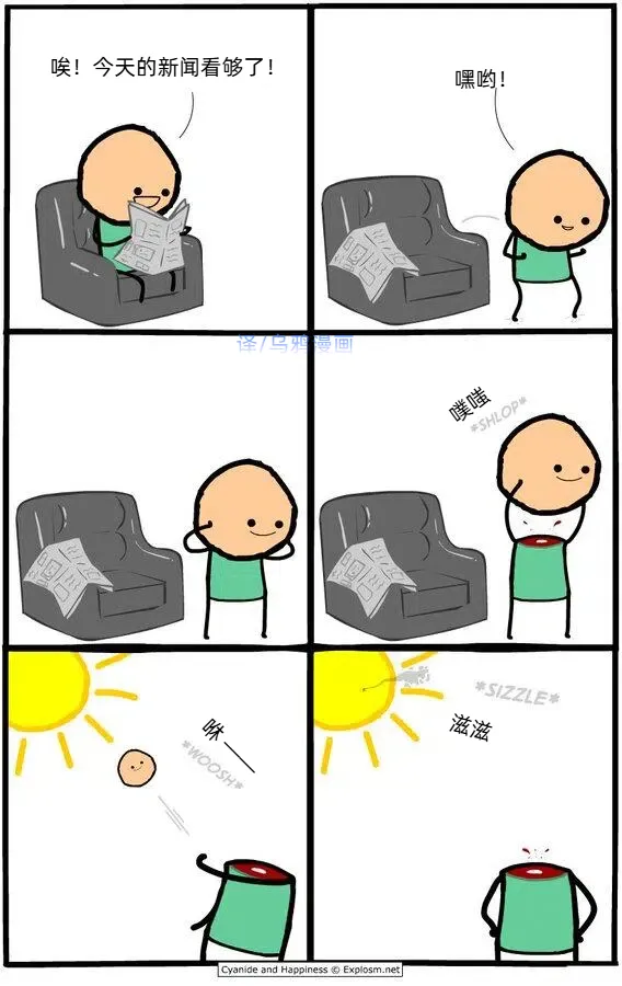 @乌鸦漫画梗图:地球的氧气并不是一直存在的。在大约24亿年前,蓝藻通过光合作用释放氧气,逐渐改变了地球大气成分。这被称为“氧气大事件”。也就是说,今天人类赖以生存的氧气,其实是古代微生物改造地球的结果。