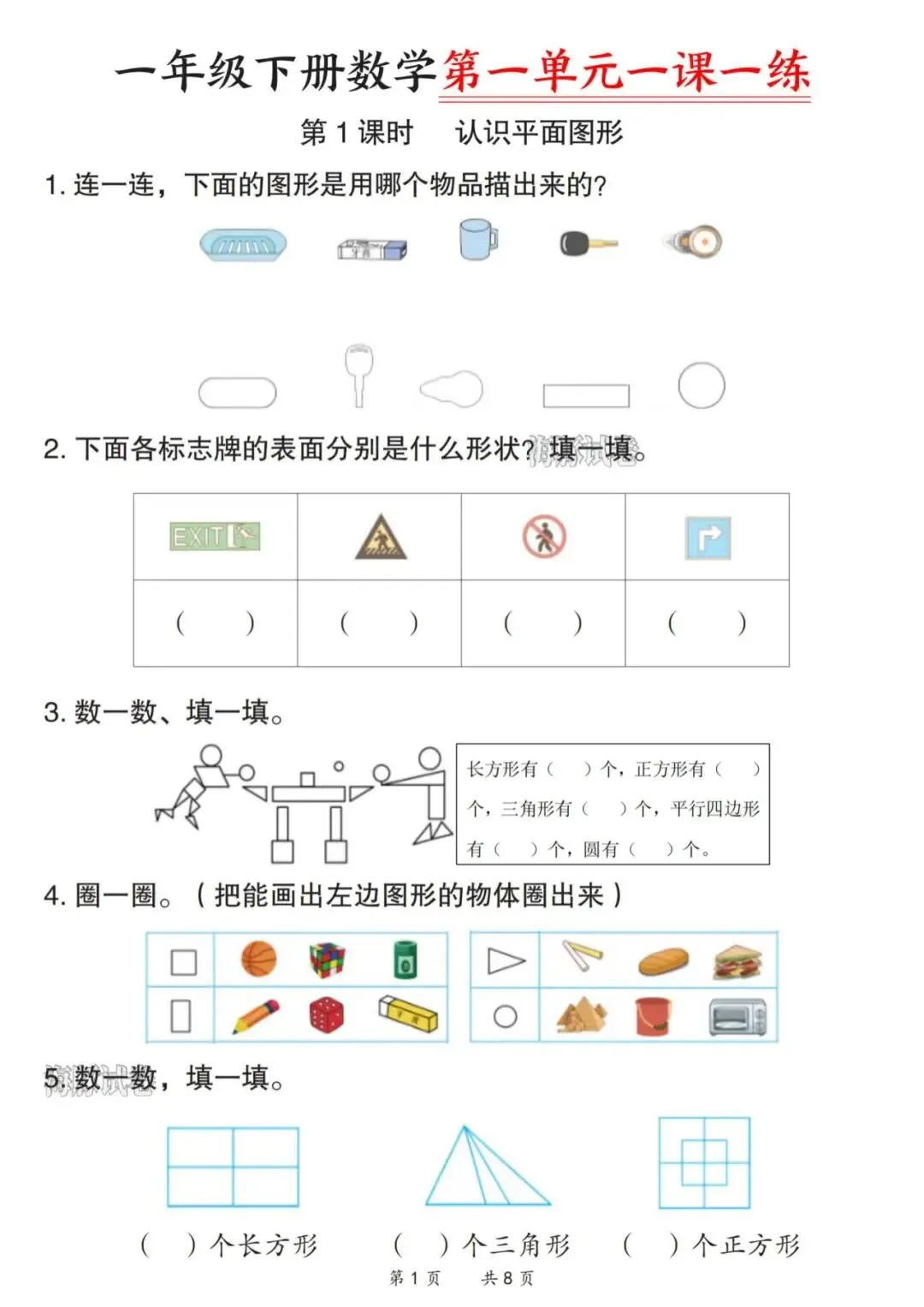 26春一年级下册数学第一单元一课一练(电子版可打印)