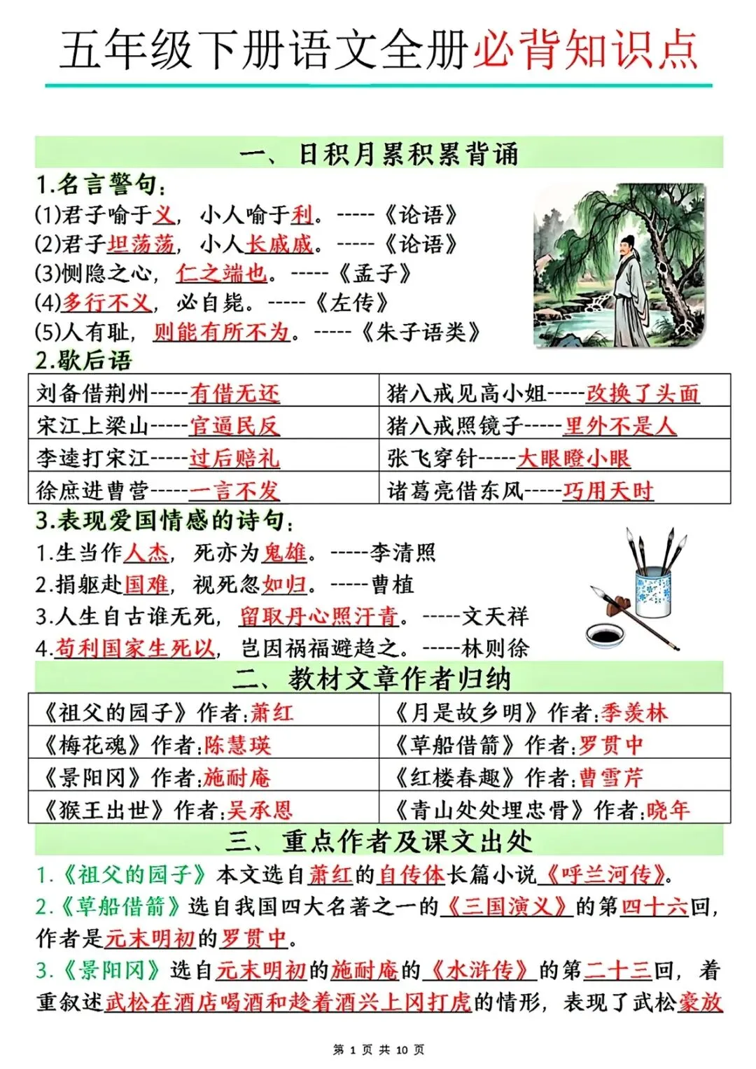 【高清电子版】五年级下语文全册必背知识点