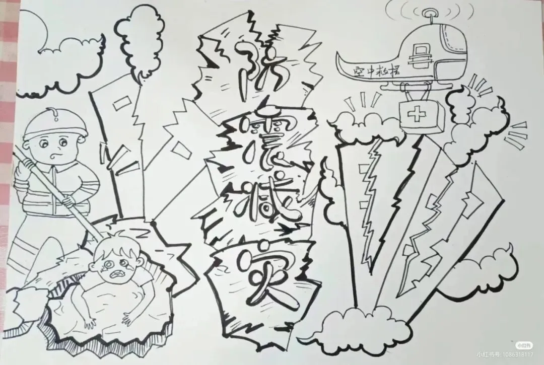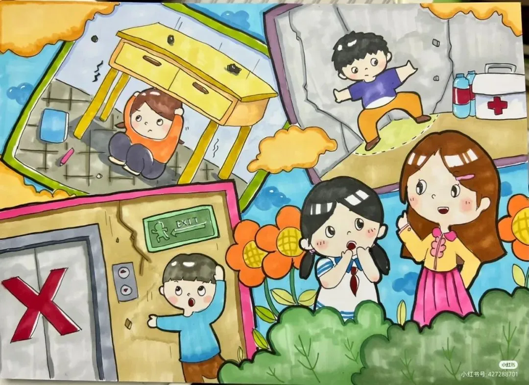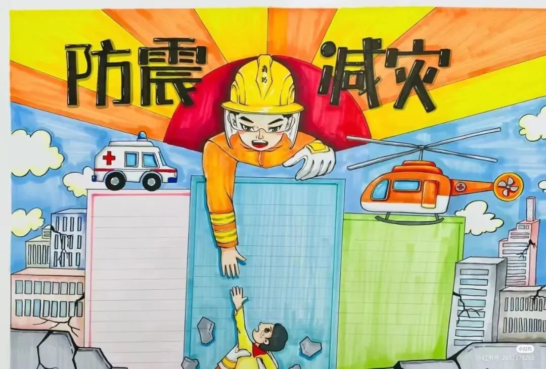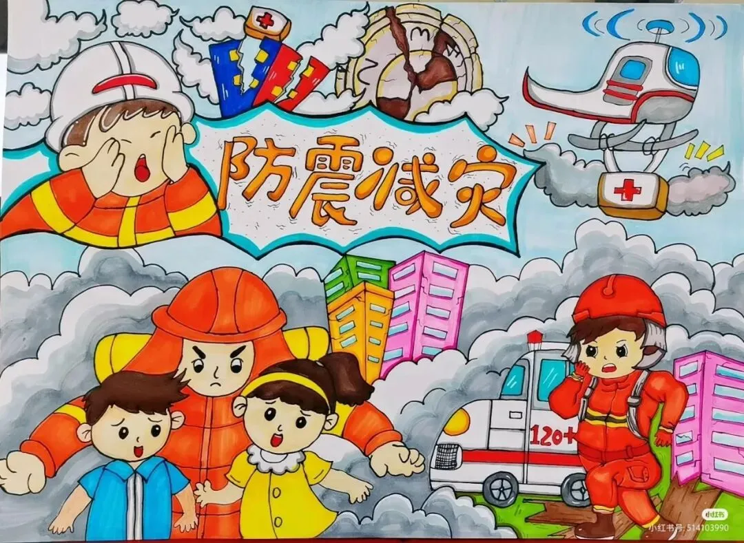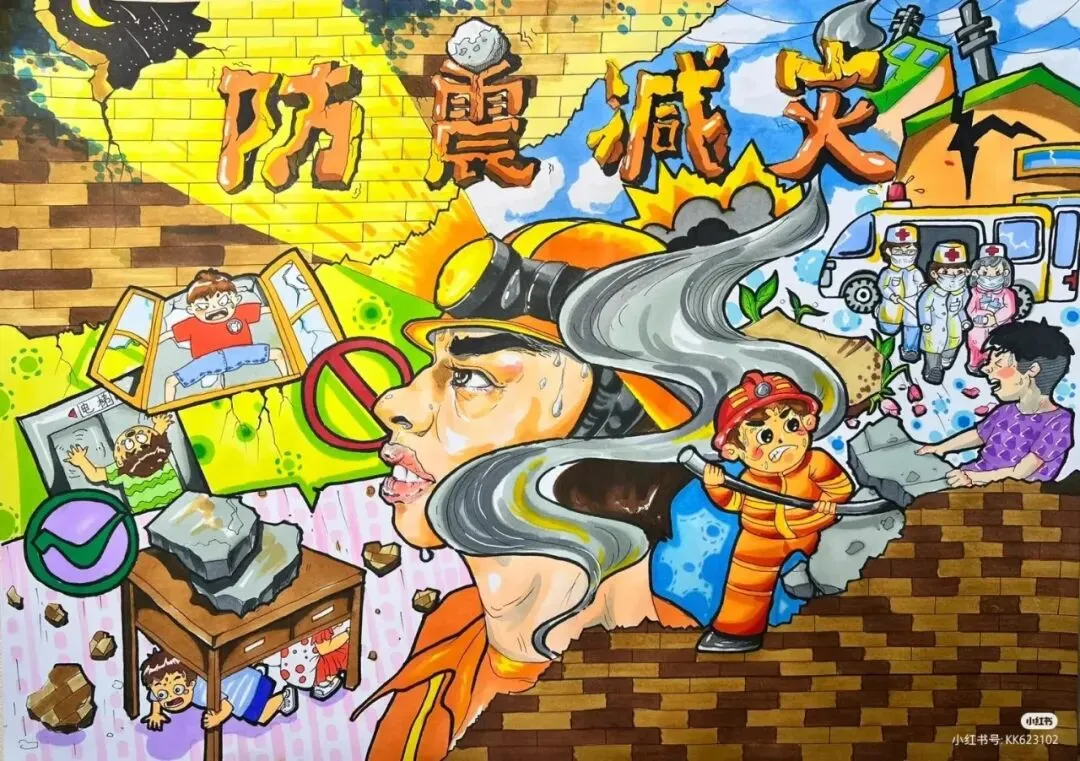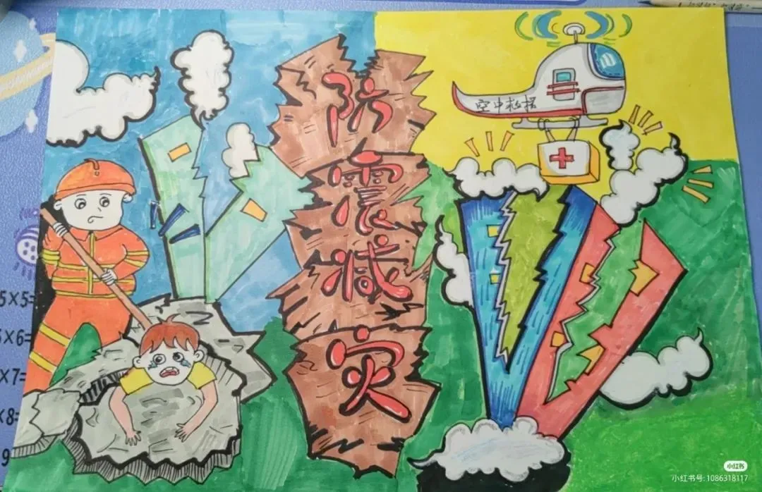防震减灾主题绘画,以色彩与线条为语言,讲述着安全与希望的故事。画面中,我们可以看到坚固的建筑、有序的疏散路线、以及人们面对灾难时冷静而坚定的眼神。这些元素不仅展现了防震减灾的基本原则,如“安全第一,预防为主”,还通过视觉冲击力,激发人们对生命的尊重与对安全的重视。