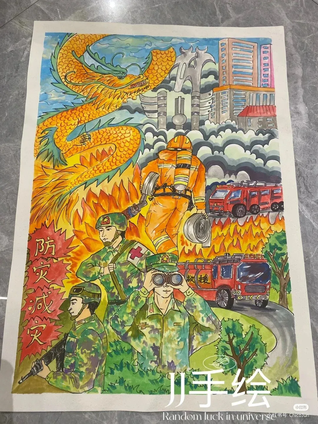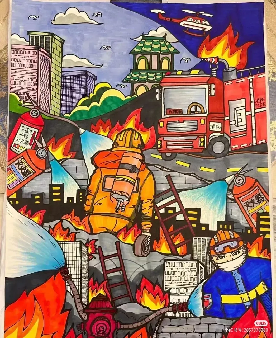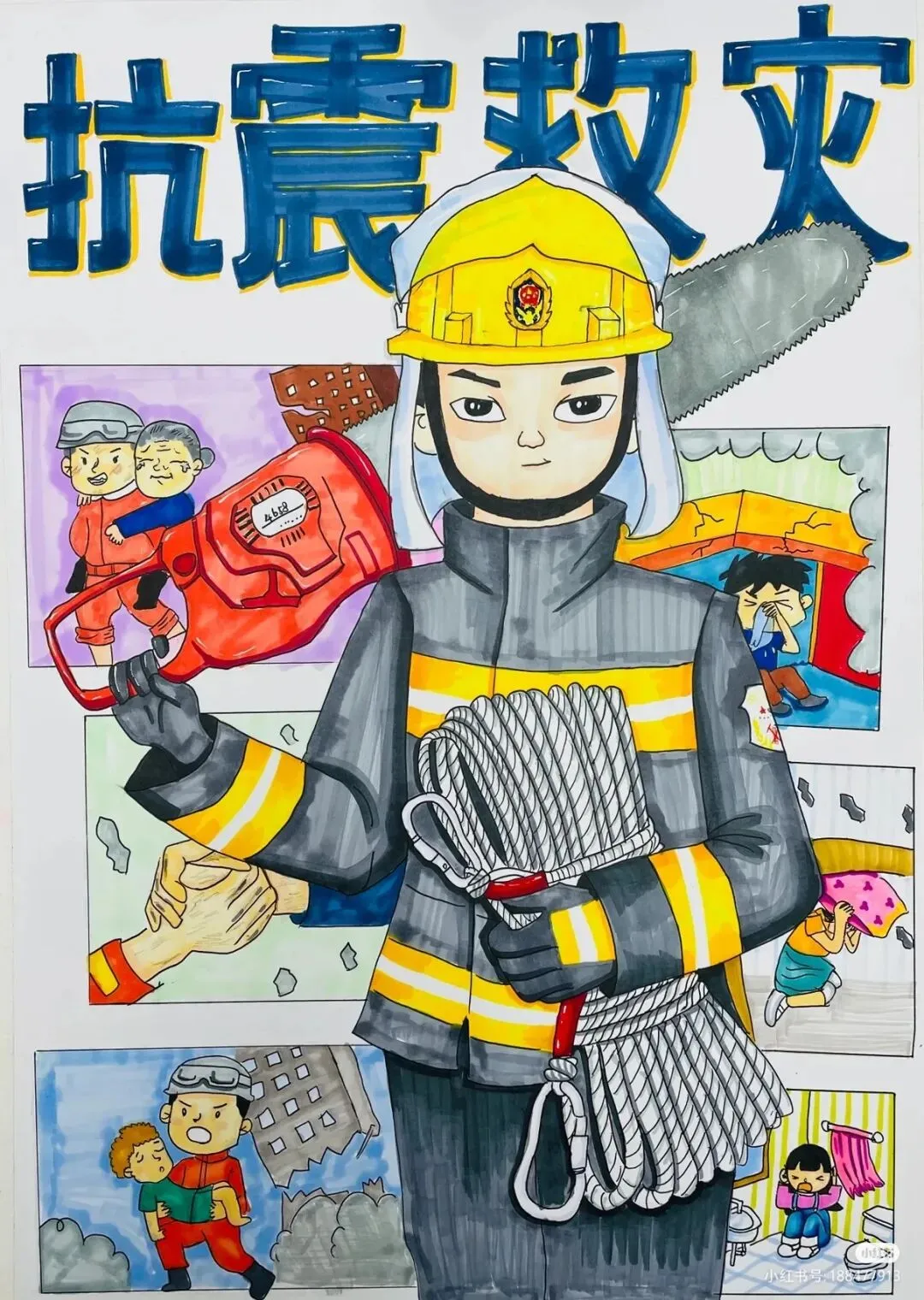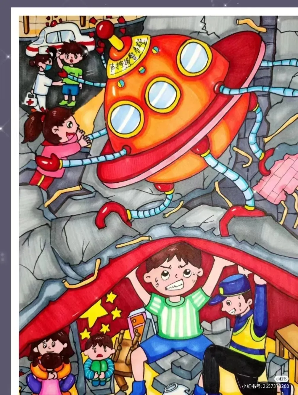 防震减灾主题绘画,以色彩与线条为语言,讲述着安全与希望的故事。画面中,我们可以看到坚固的建筑、有序的疏散路线、以及人们面对灾难时冷静而坚定的眼神。这些元素不仅展现了防震减灾的基本原则,如“安全第一,预防为主”,还通过视觉冲击力,激发人们对生命的尊重与对安全的重视。