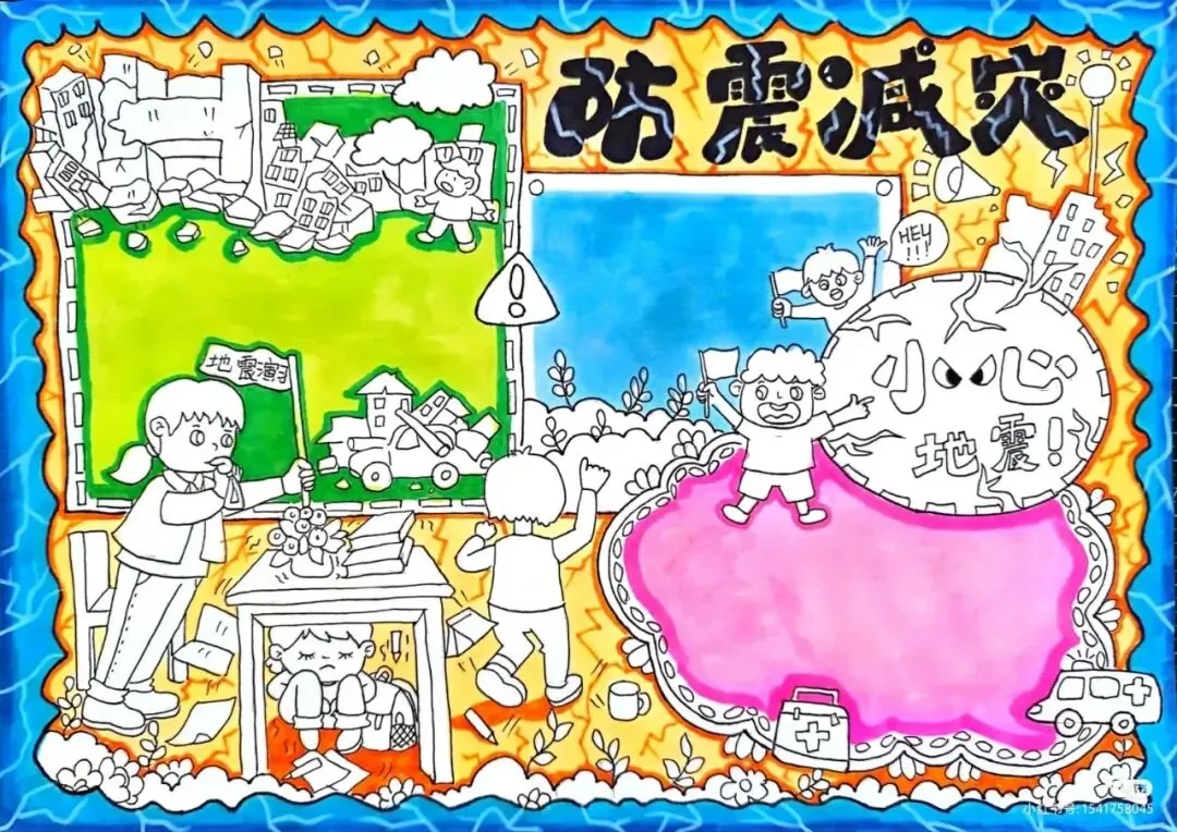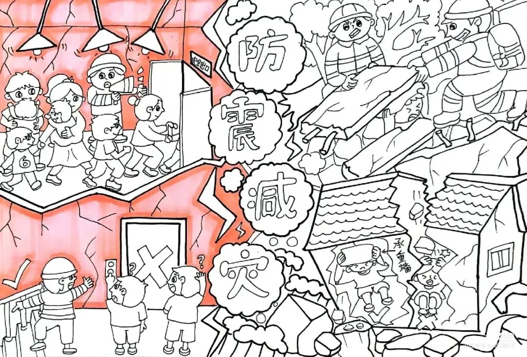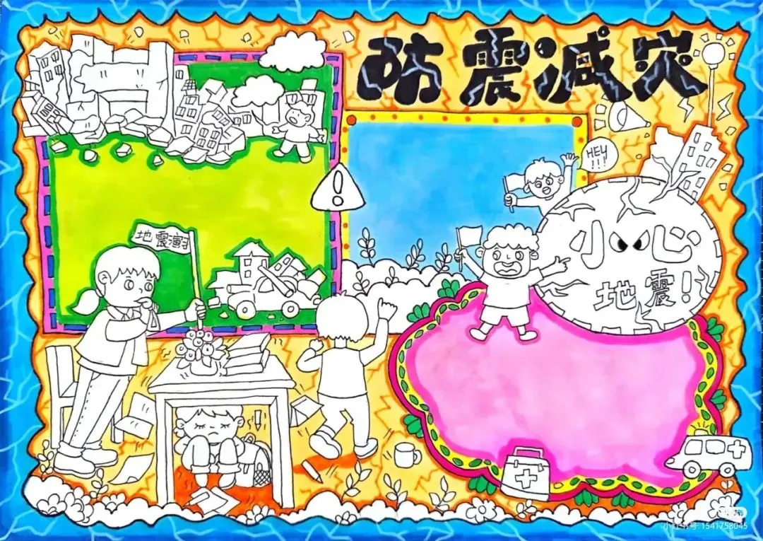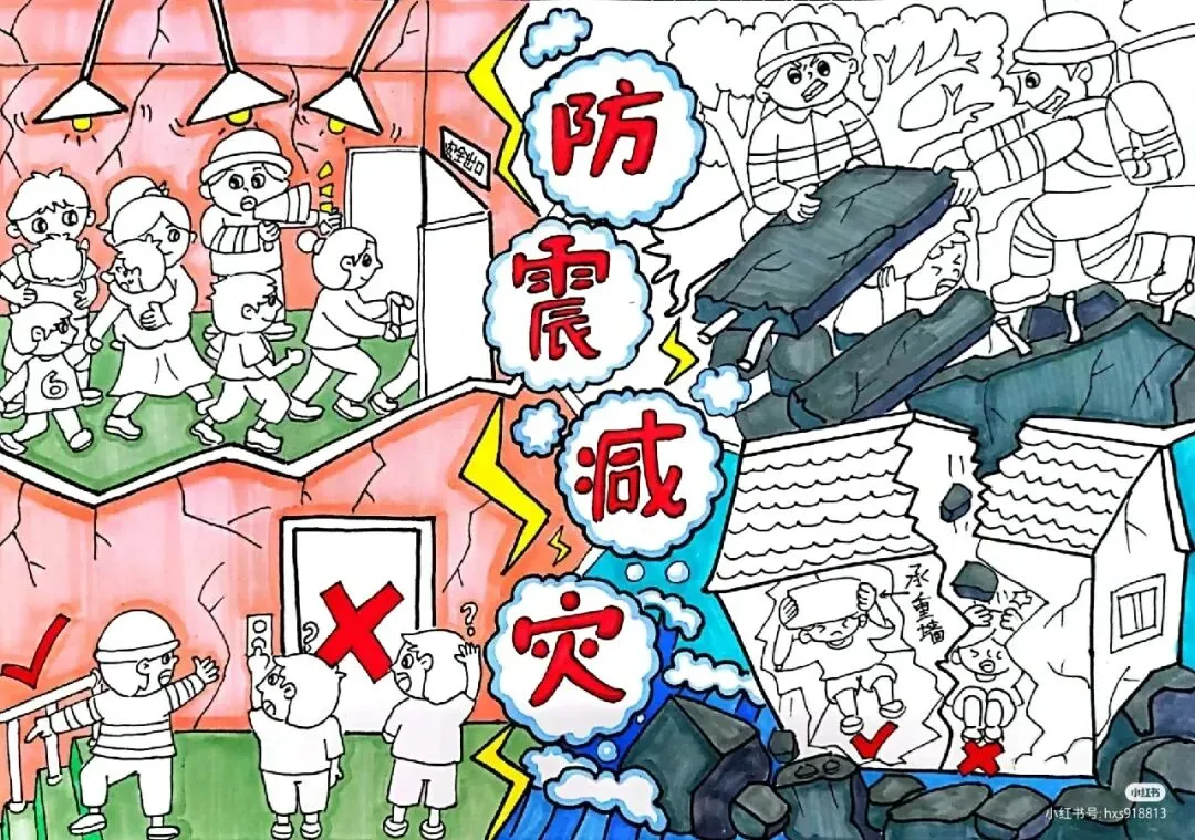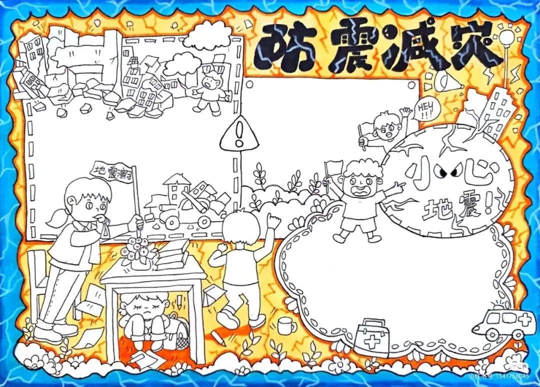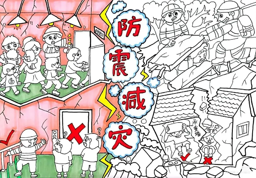 防震减灾主题绘画+防震减灾手抄报,可直接打印涂色~手抄报模板!收藏起来!