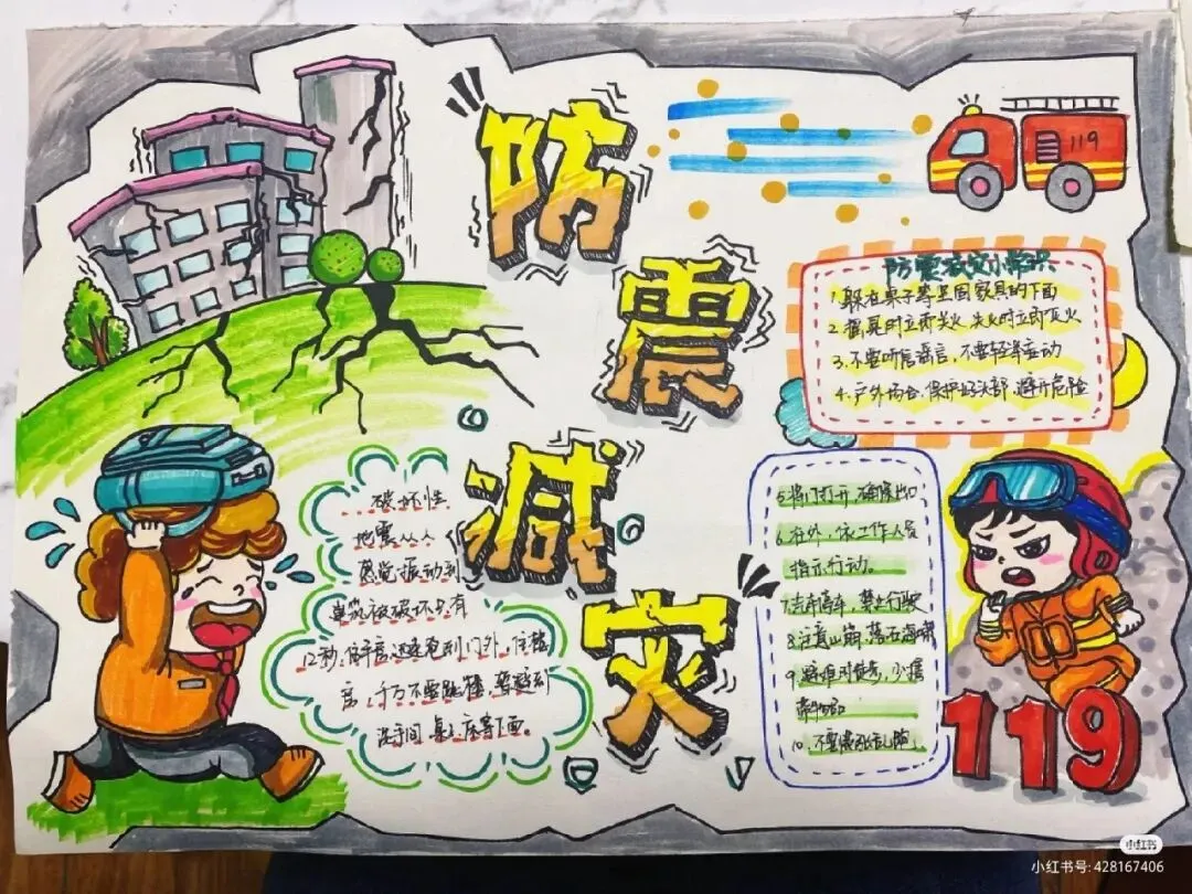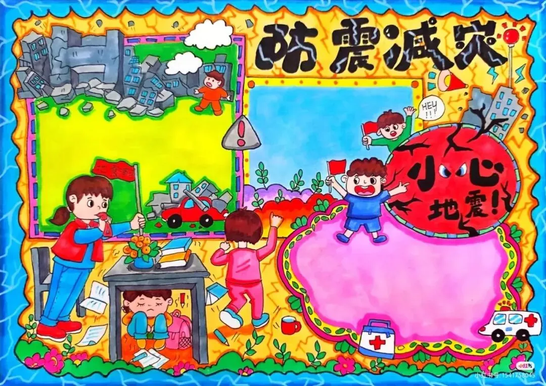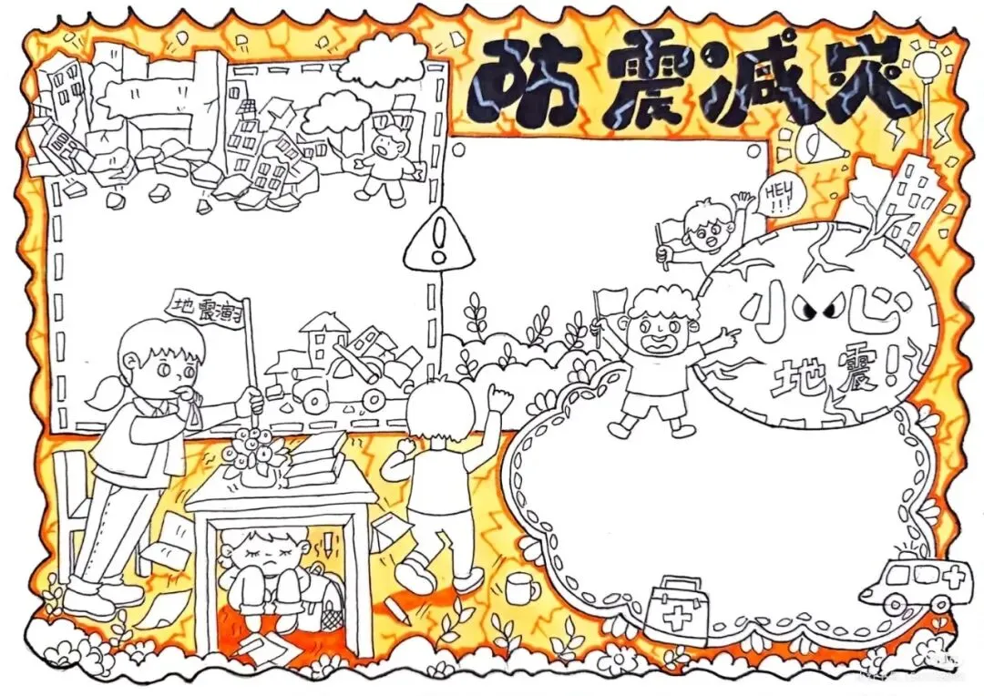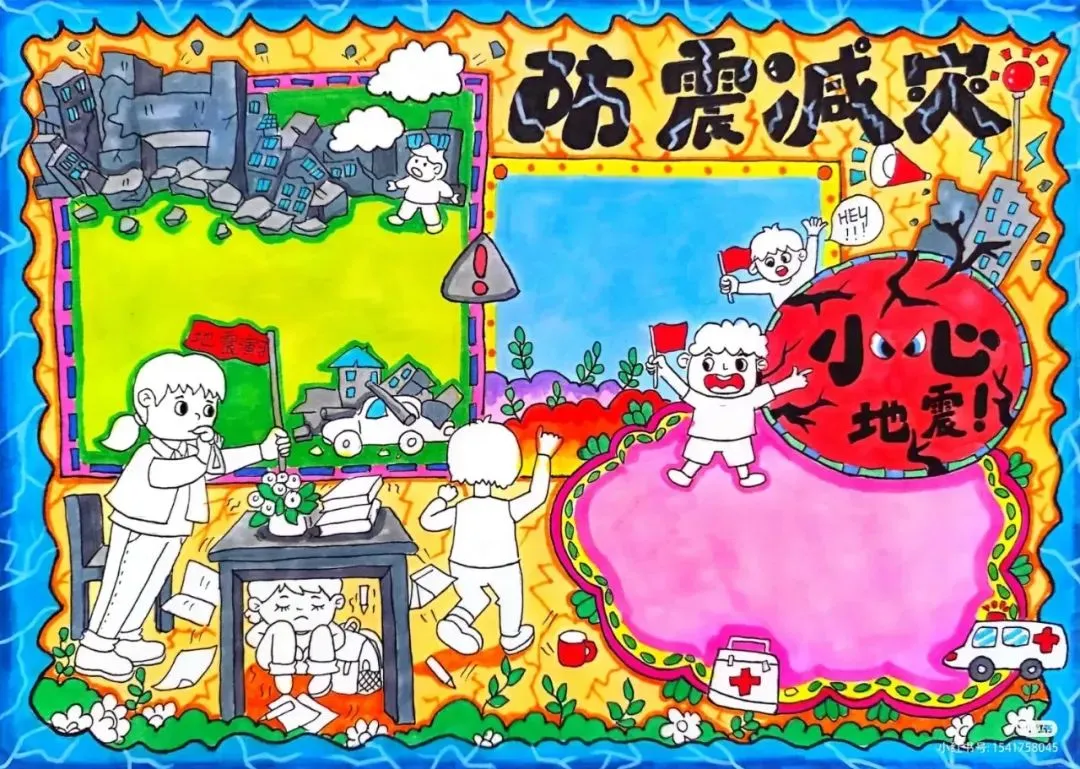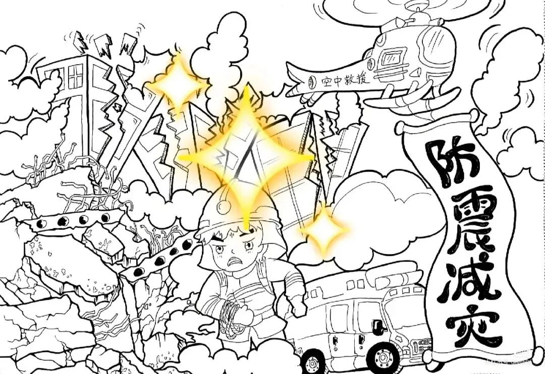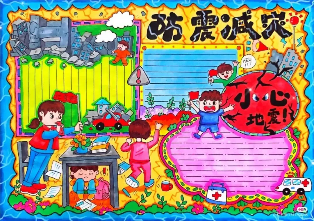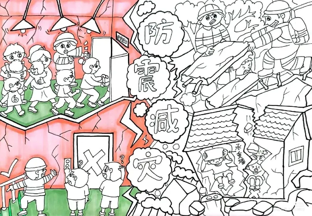 防震减灾主题绘画+防震减灾手抄报,可直接打印涂色~手抄报模板!收藏起来!