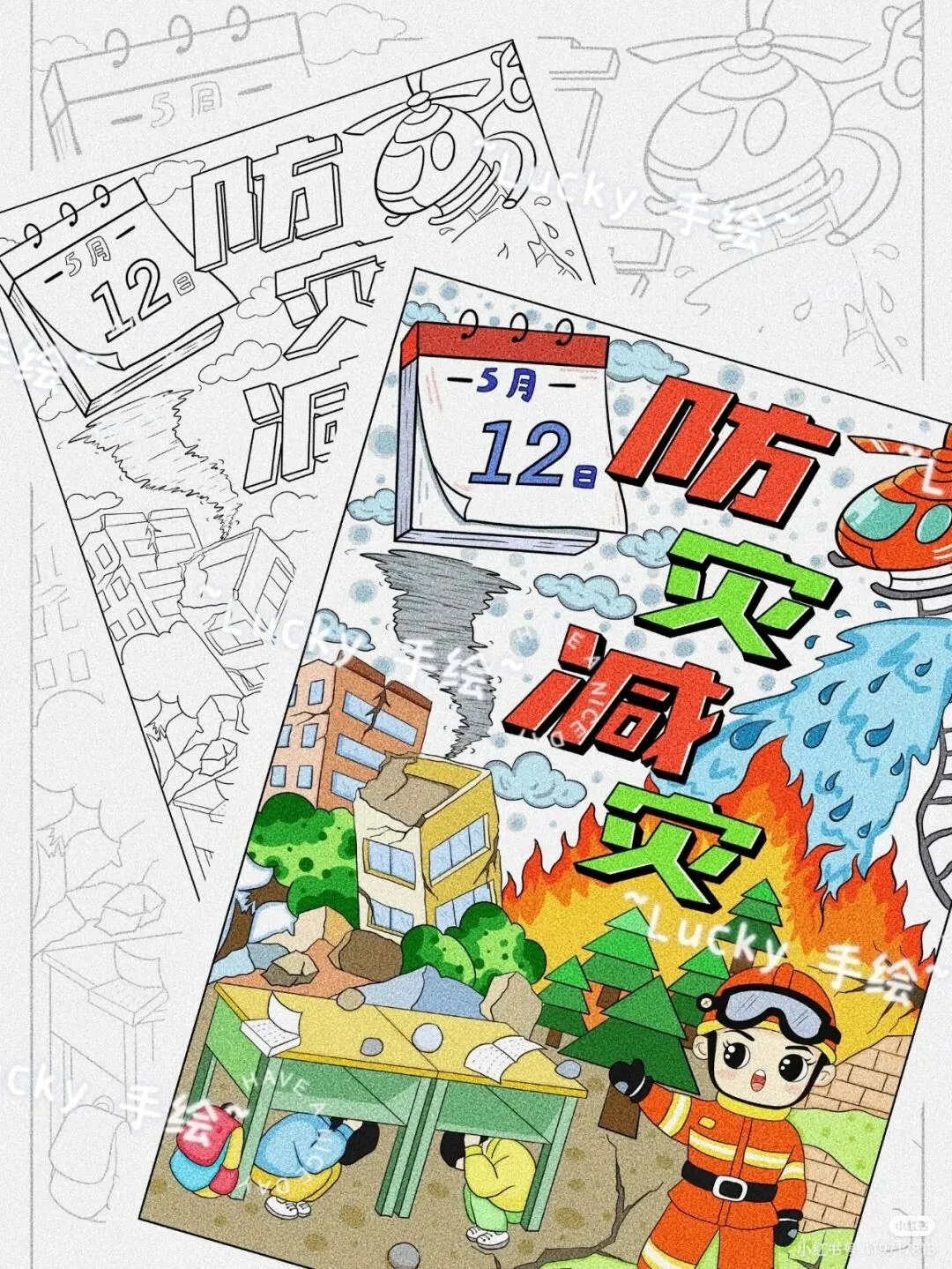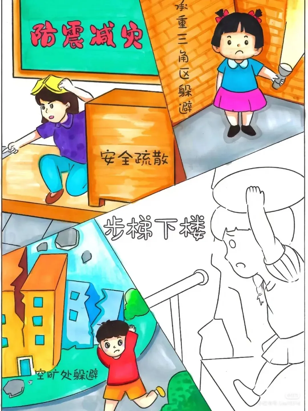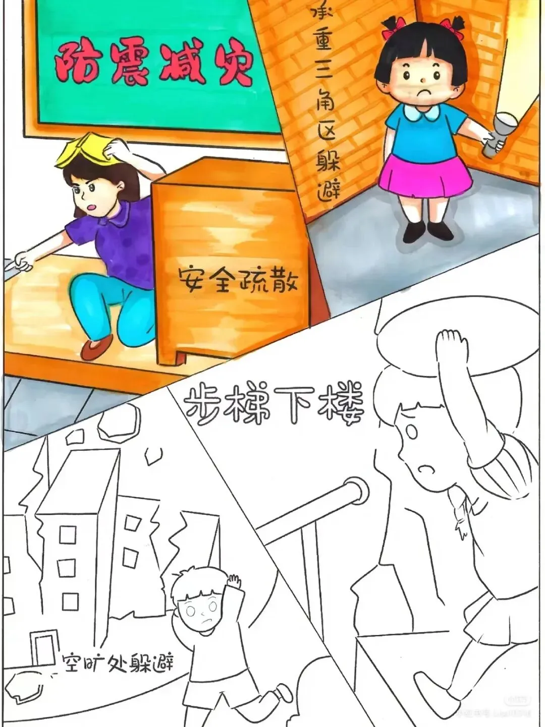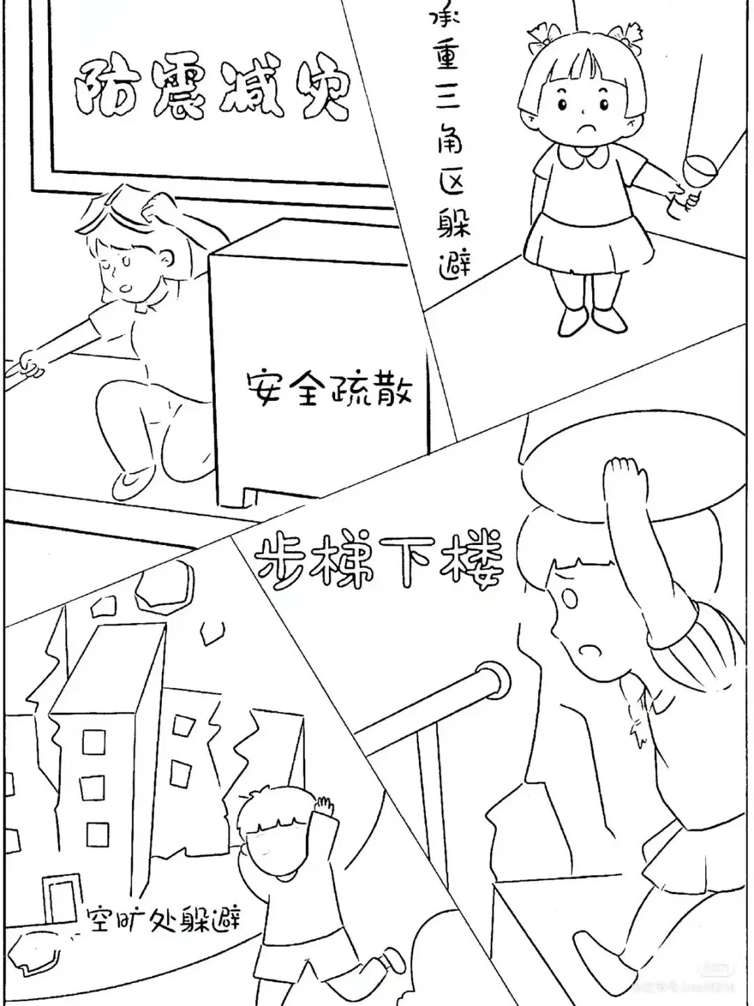 防震减灾主题绘画+防震减灾手抄报,可直接打印涂色~手抄报模板!收藏起来!