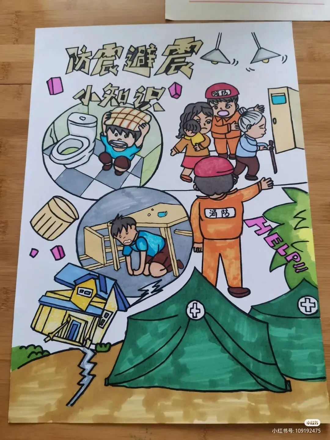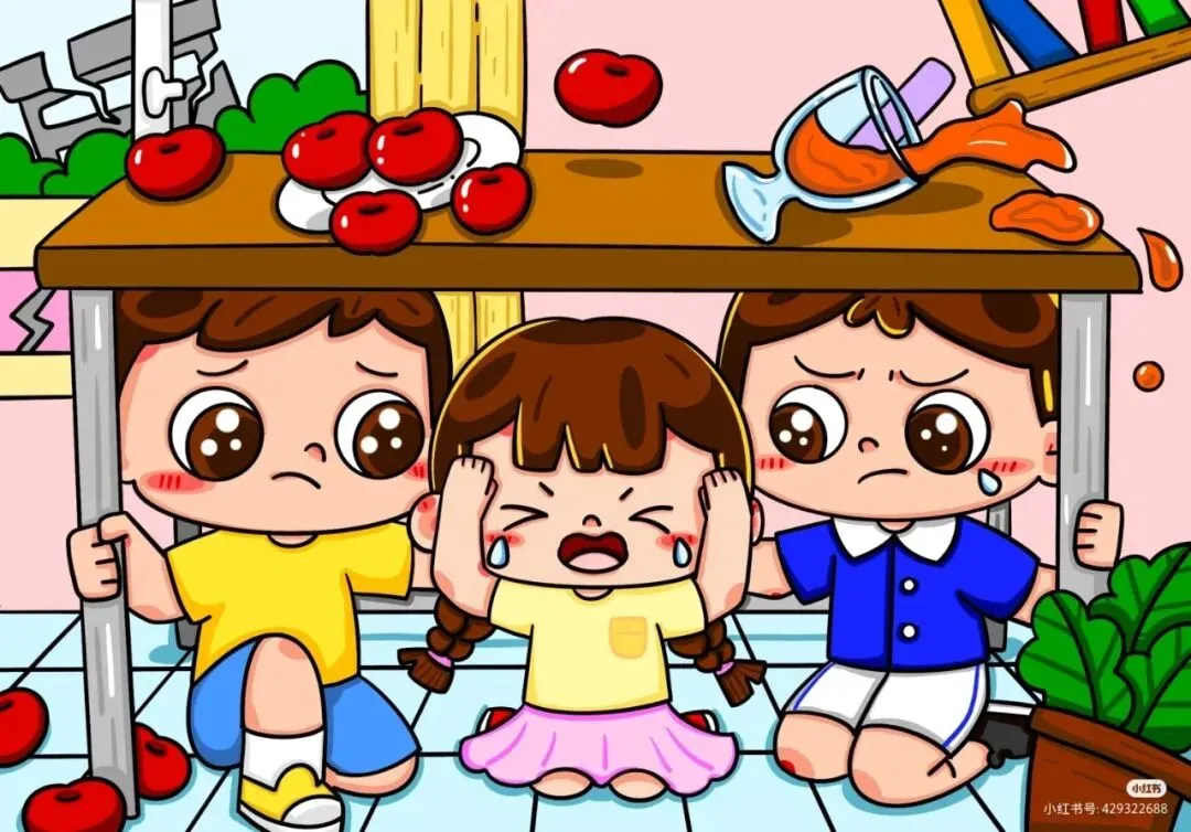 前景:可以描绘正在进行的救援活动,如救援人员在废墟中搜寻幸存者,或是人们在进行地震演习,学习桌下避难等安全行为。