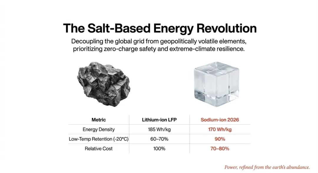 为了摆脱对昂贵且地缘风险极高的锂矿供应链的依赖,2026年,钠离子电池正式在储能和低成本出行市场实现大规模突破。