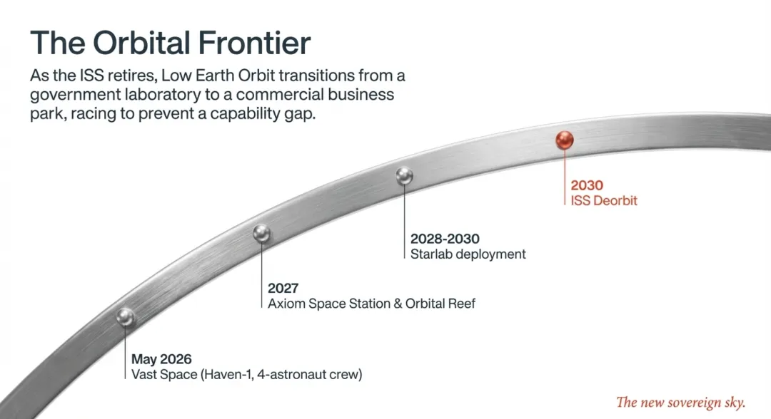 随着国际空间站(ISS)计划于2030年退役,近地轨道的控制权正从政府机构转向商业巨头,防止出现轨道能力的“真空期”。