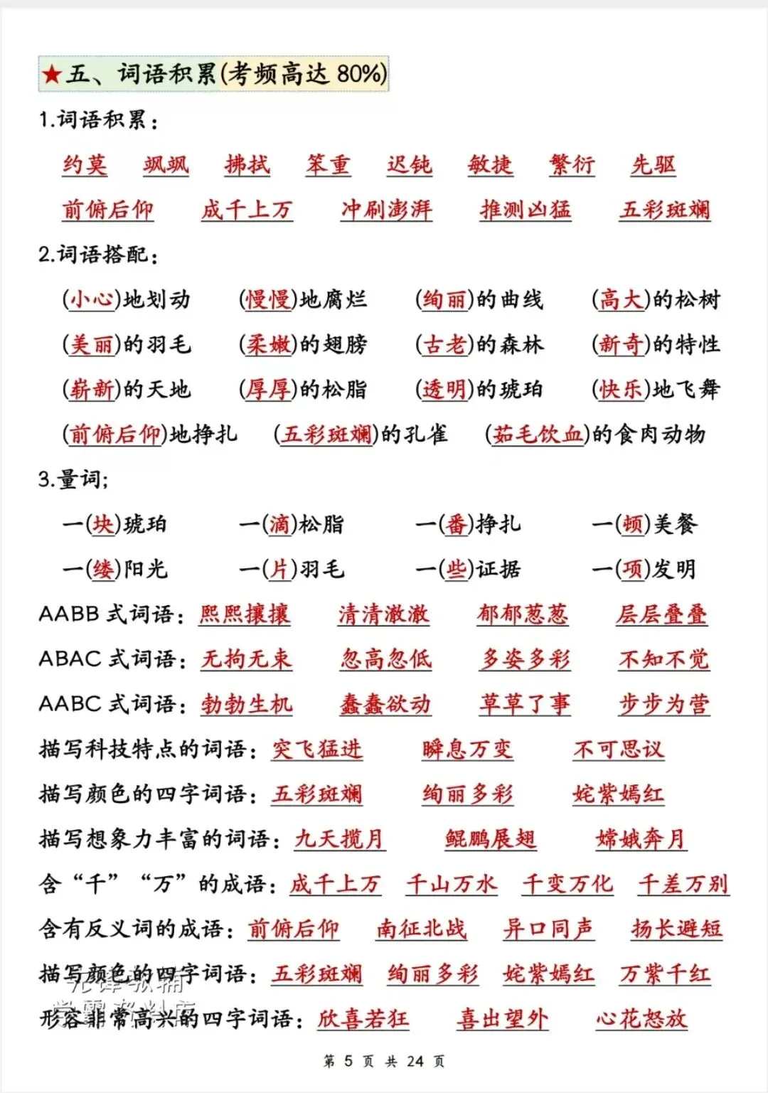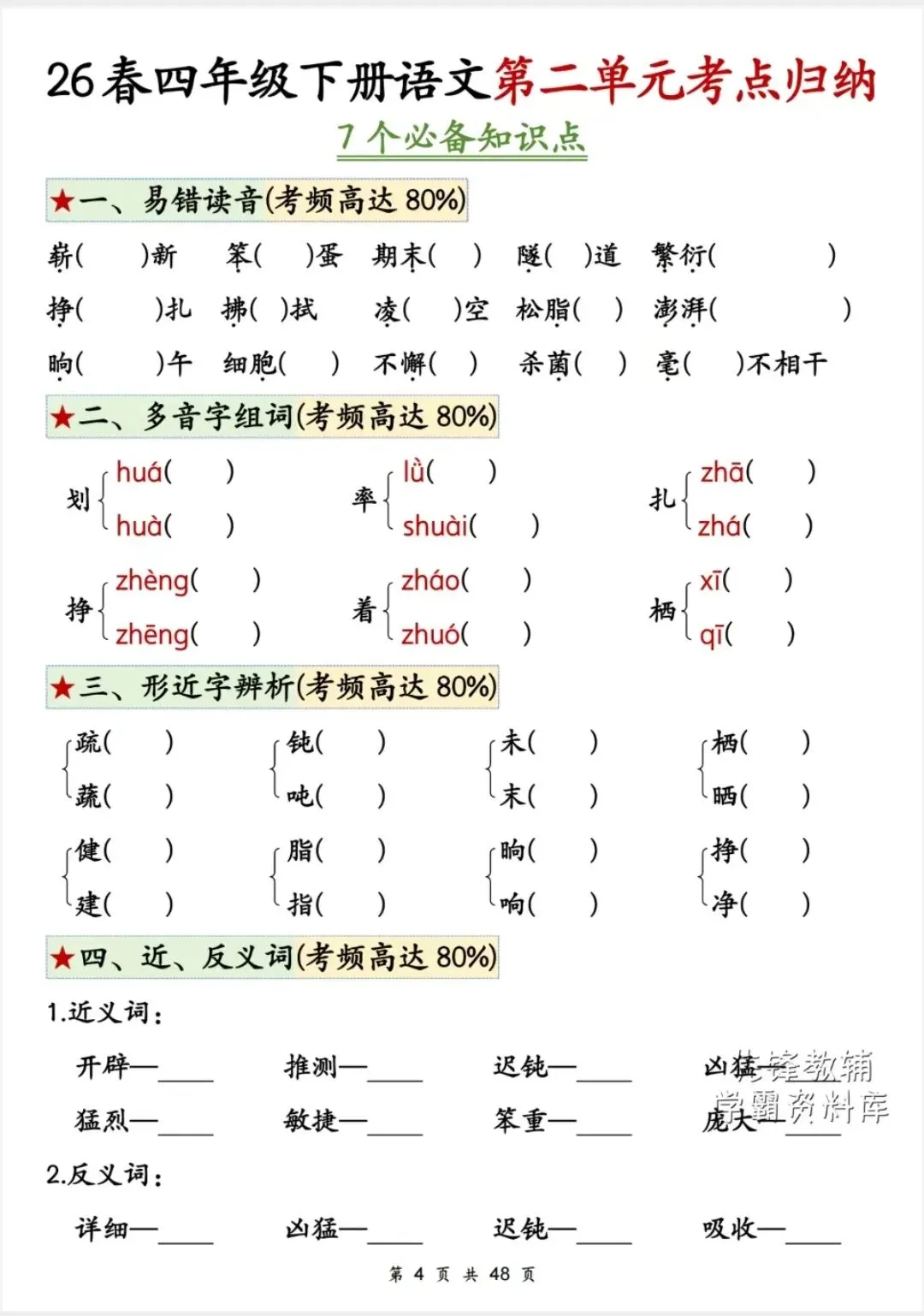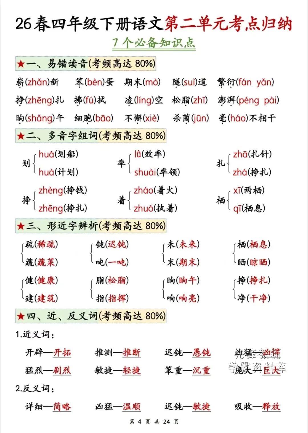新版二年级下册语文第二单元考点归纳电子版可打印