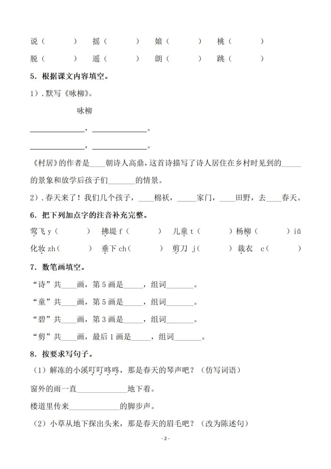 今日给大家分享的是:2026年春二年级下册语文人教部编版全册同步一课一练,可电子版下载打印。