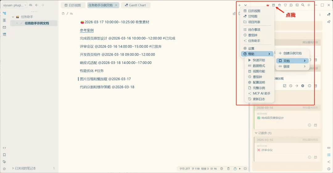 任务助手是思源笔记的一款任务管理插件,v0.11.0 带来全新的斜杠命令系统,让任务操作快如闪电!