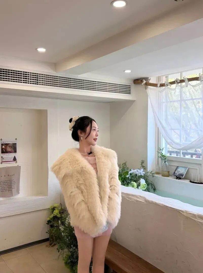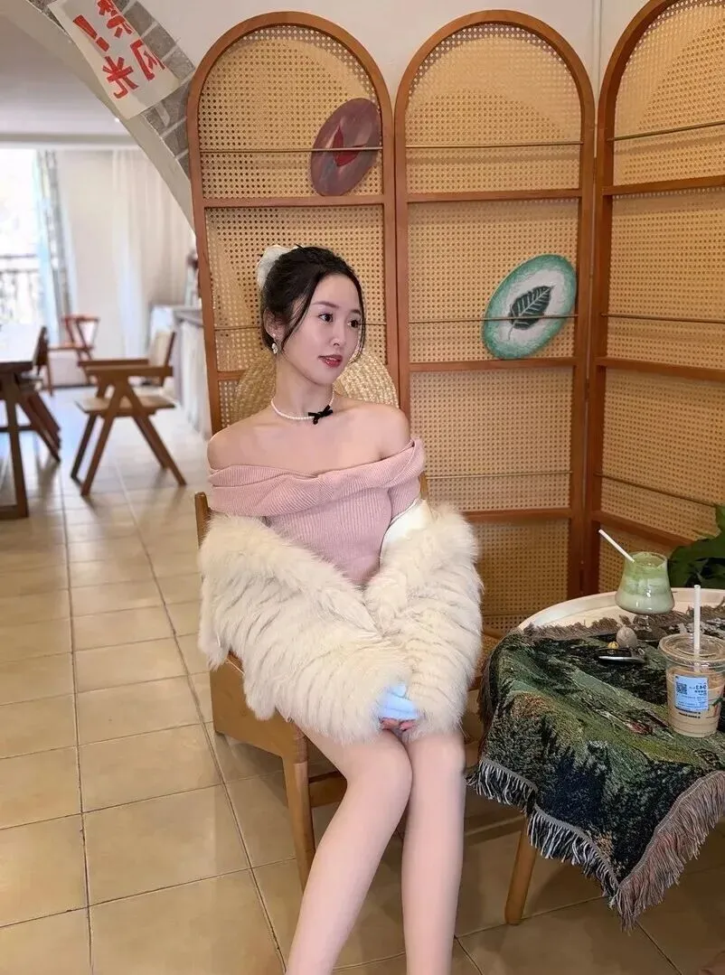 在家穿的都是精美的米白色短款皮草外套,外面是浅粉色的蕾丝打底衫。下身穿着同色系的包臀短裙以及白色蕾丝袜,脚踩浅金色玛丽珍鞋,这样的一身即便是在家拍照也会特别有气质。约上好朋友去吃顿下午茶,气氛就一下被提升起来。