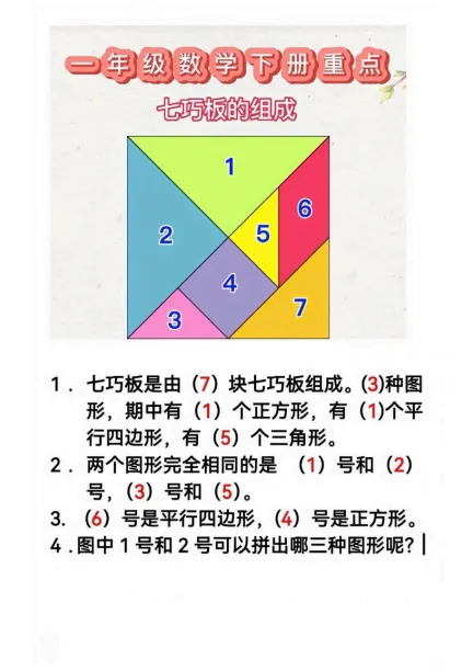 一年级(下)数学 必考重点知识,PDF电子版