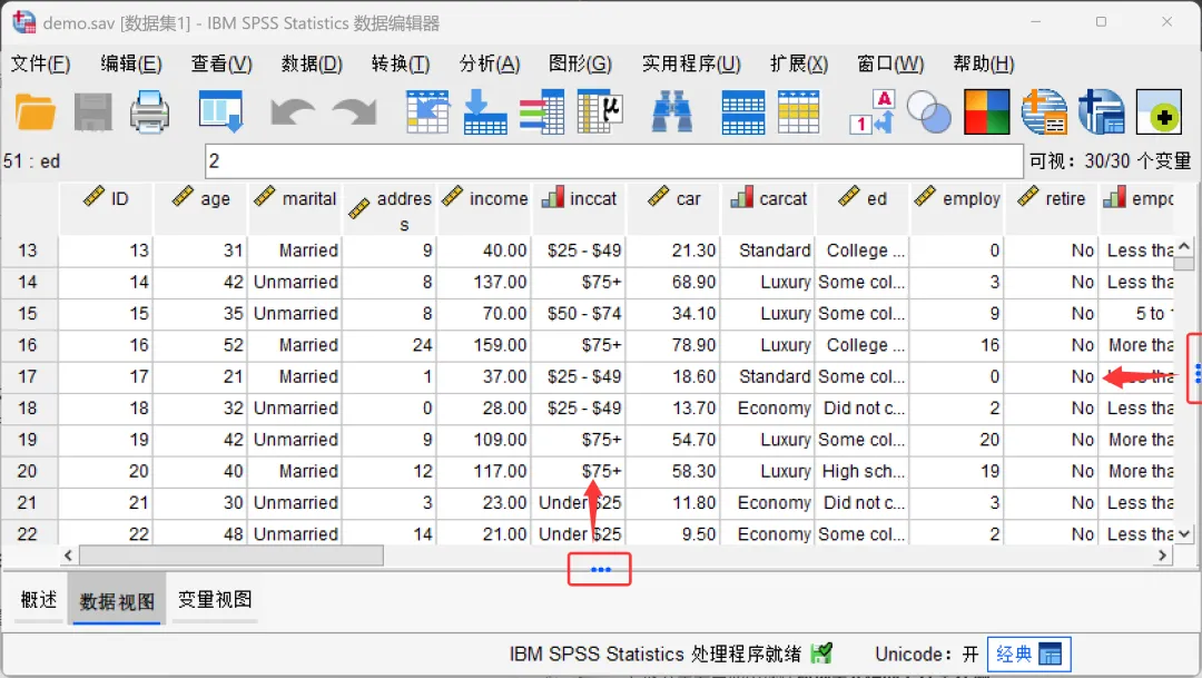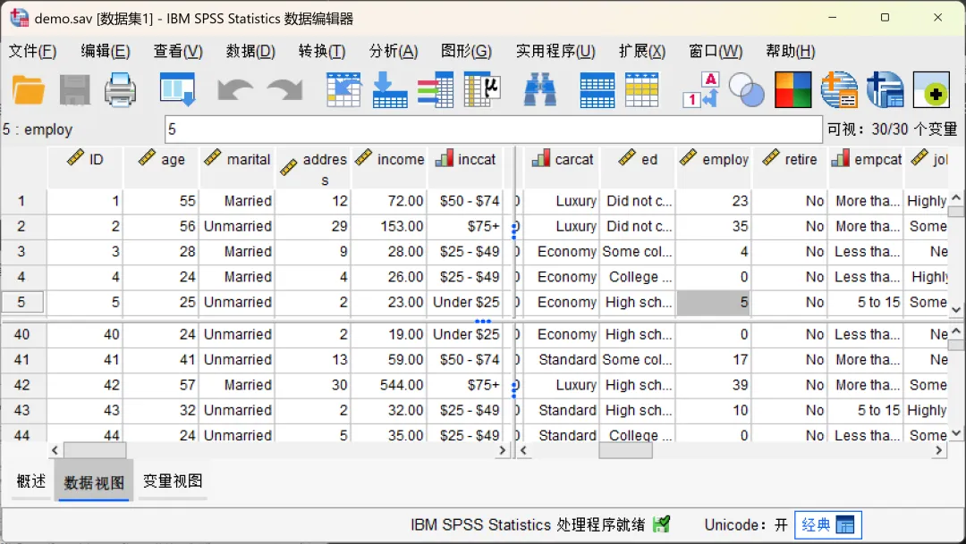 SPSS的数据编辑器不仅是数据的容器,更是一个可定制的工作台。我们可以根据个人偏好及具体分析需求,灵活调整显示选项和视图布局,大幅提升数据浏览、清洗和核对的效率。